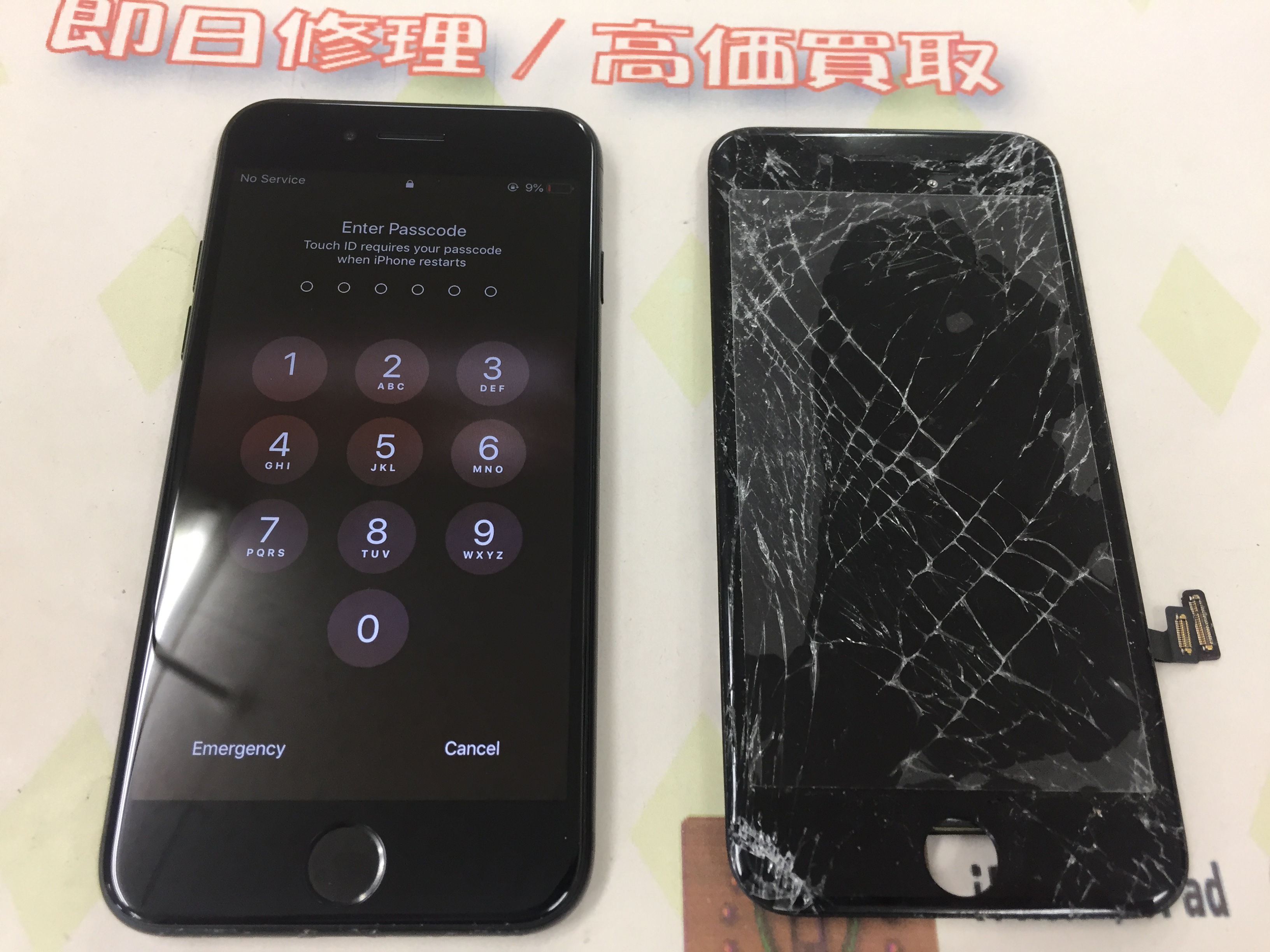 iPhone7 ガラス割れ/液晶不良→互換パーツでの修理 ¥7,800(税込)