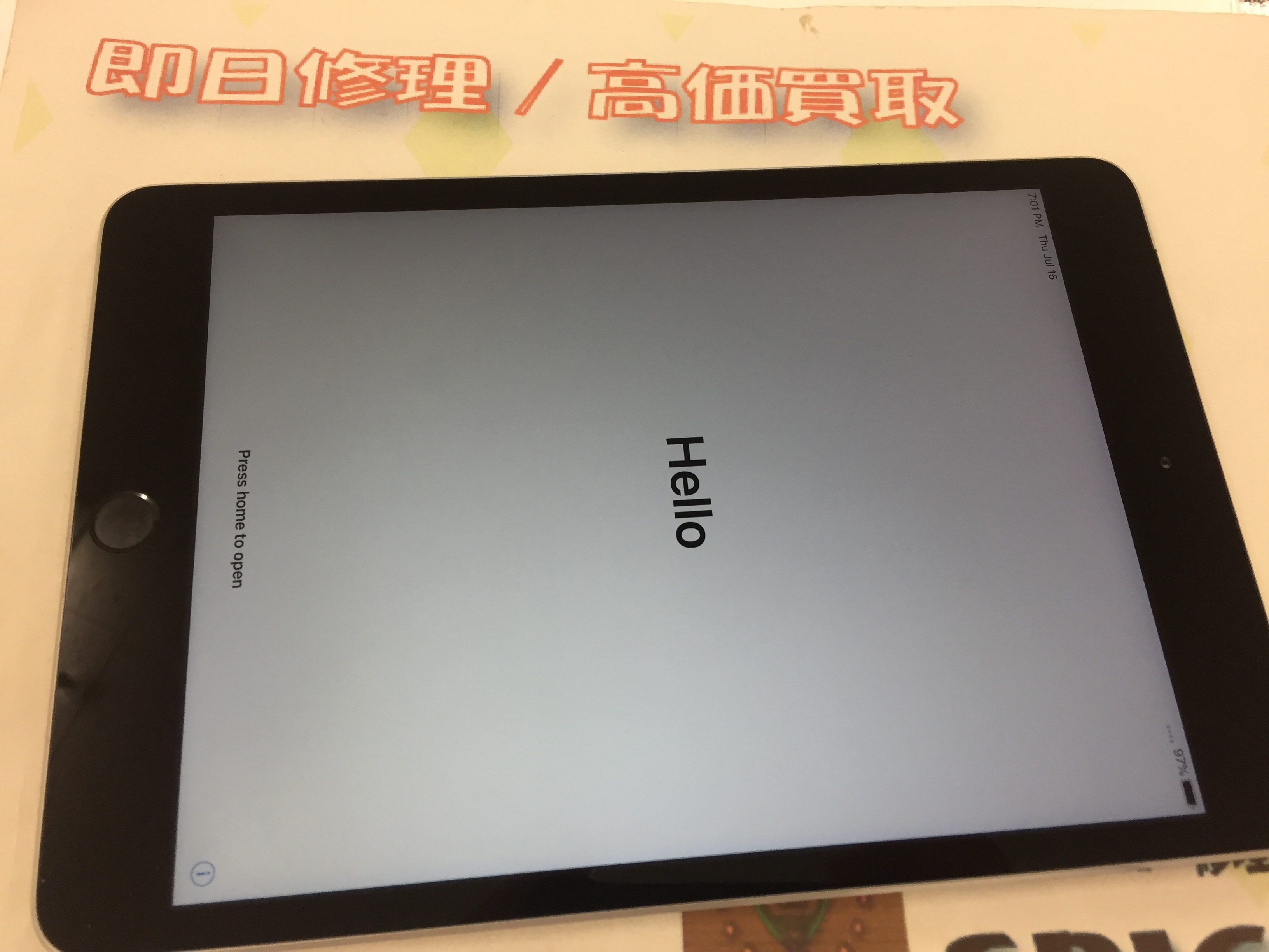 iPad mini3 パスコード解除不可→強制初期化 ¥2,800(税込)