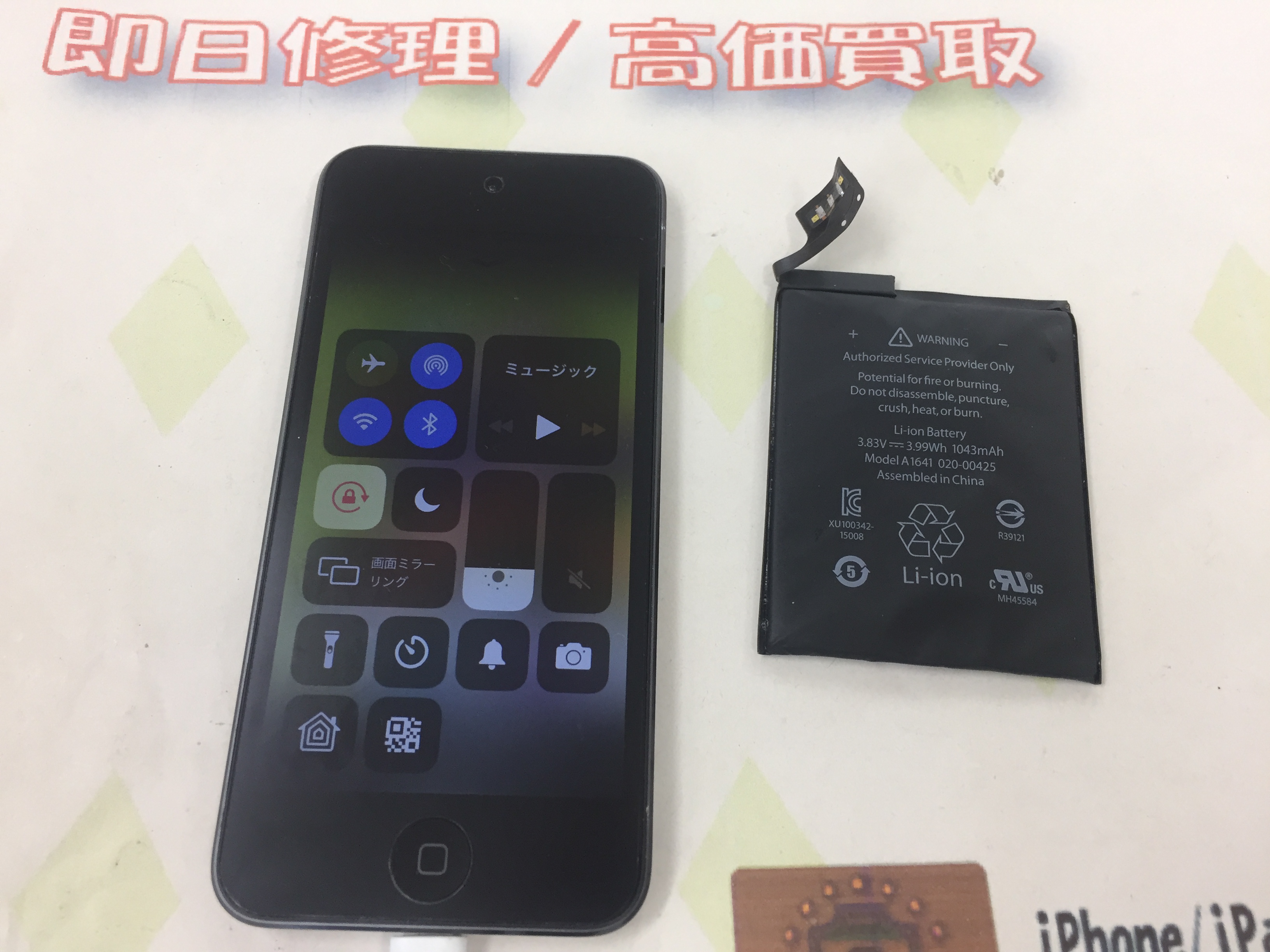 iPod touch6世代 バッテリー交換 ¥8,800(税込)