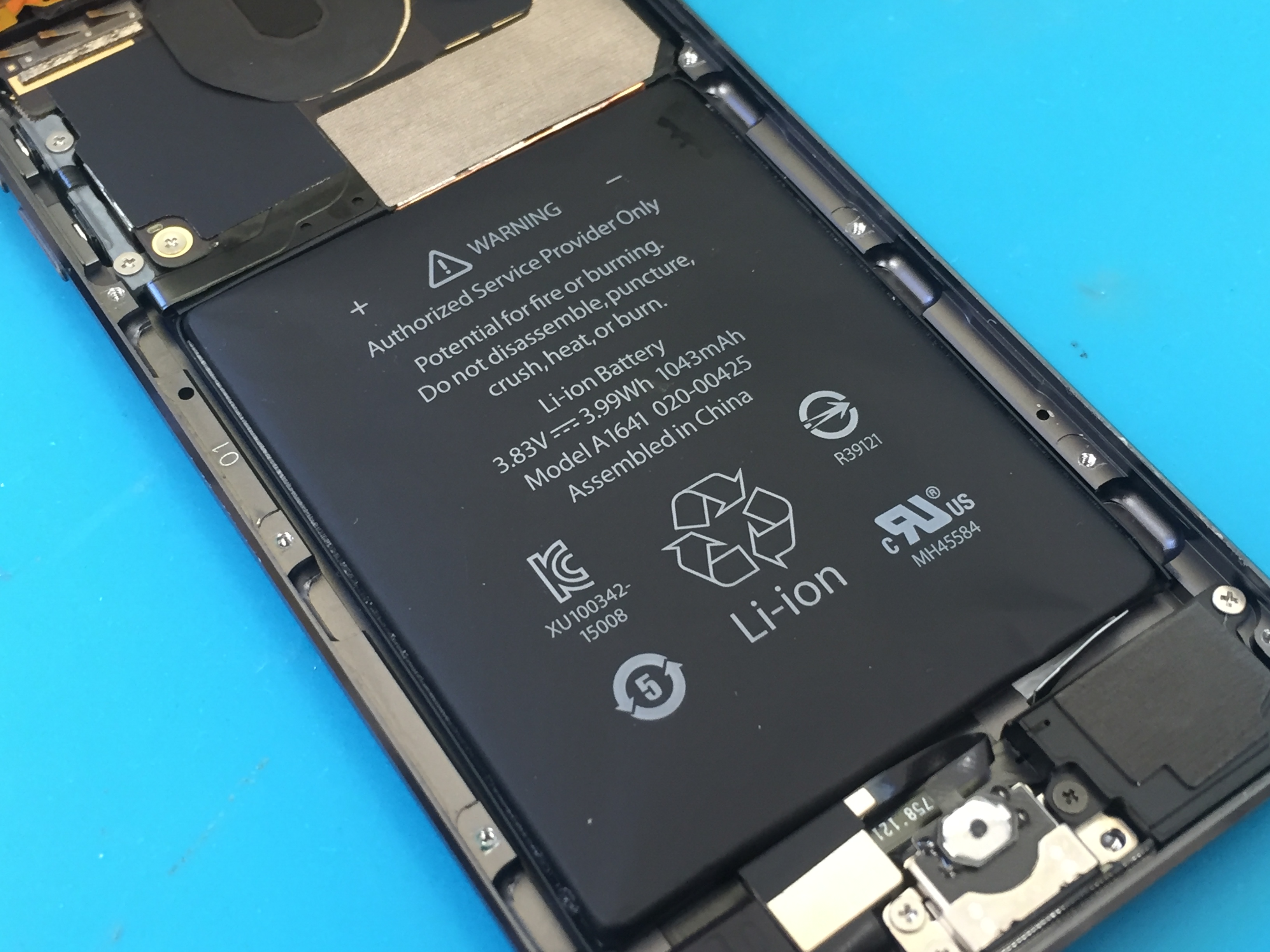 分解すると劣化によりバッテリーが膨張しておりましたのでお時間40分ほど頂き新品のバッテリーに交換完了です。
