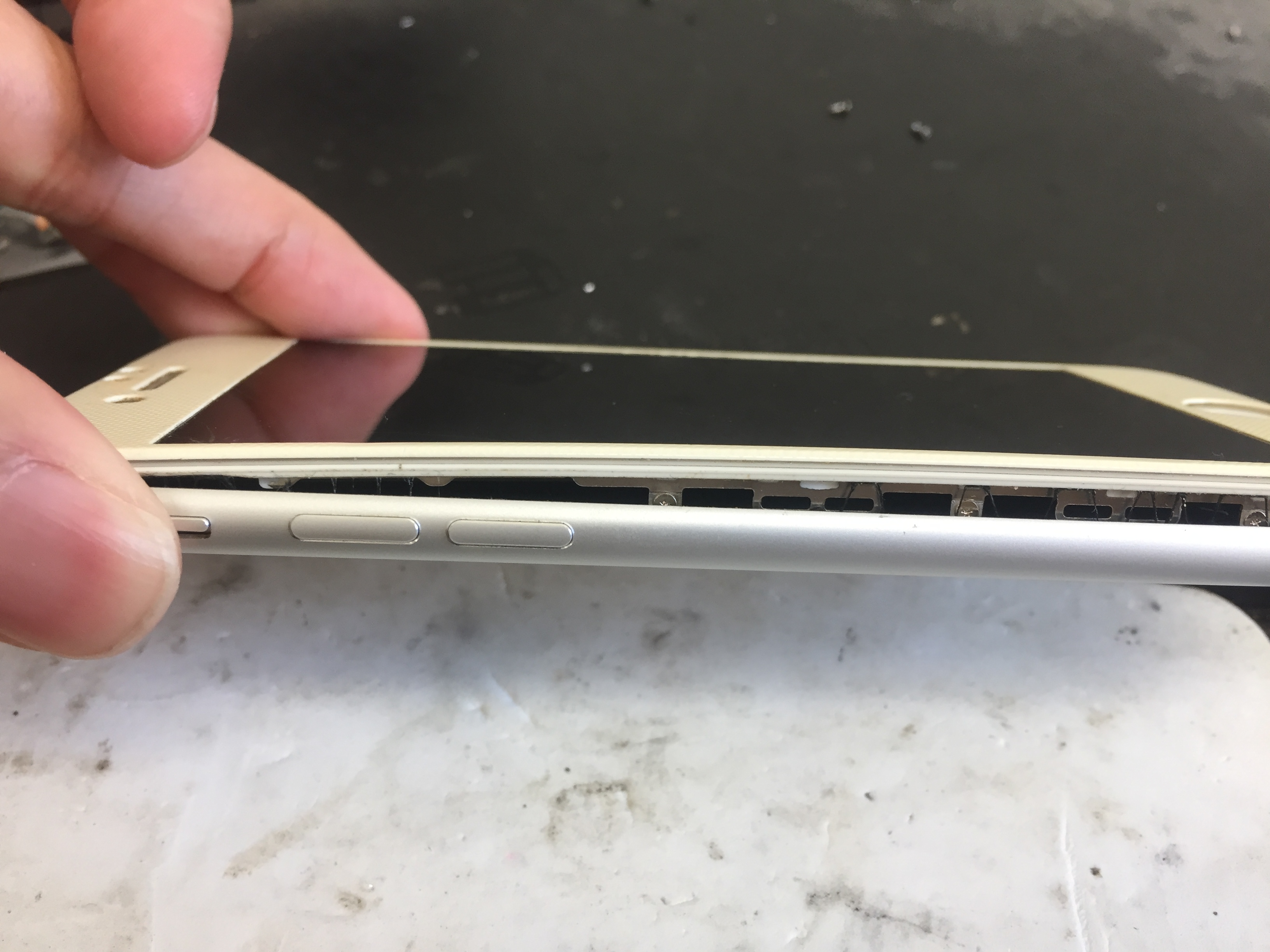 7のほうは劣化によりバッテリーが膨張、画面が浮き上がっている状態でした。