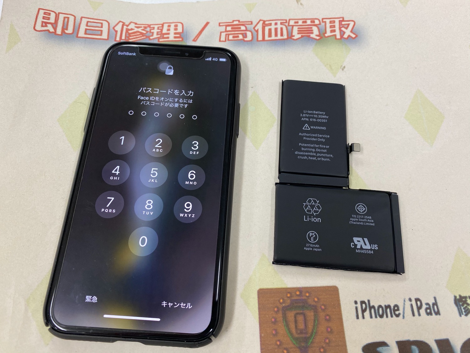 iPhone X バッテリー交換 ¥9,800(税込)