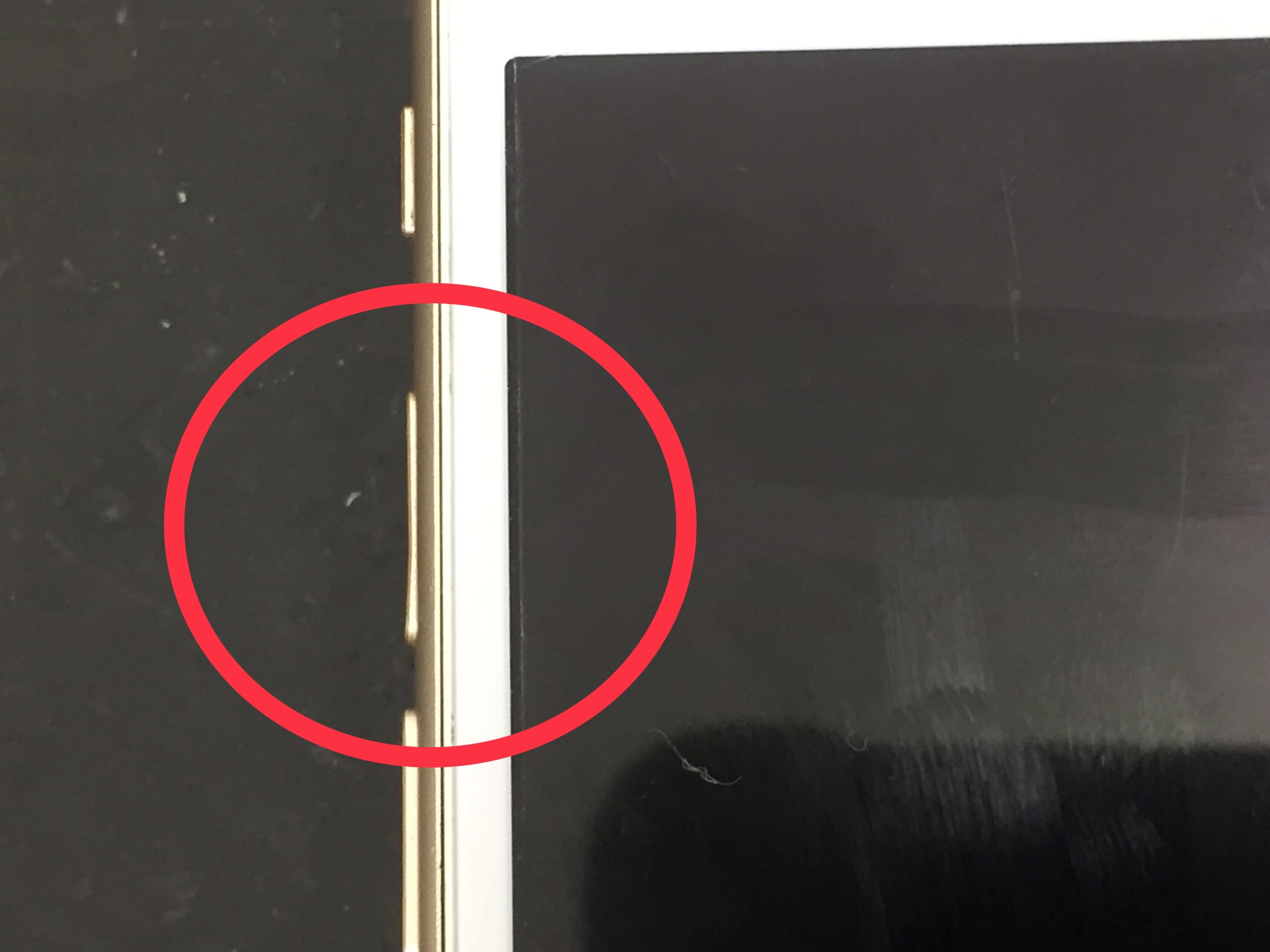 落下により音量ボタンの上が凹んでしまい常に音量が上がってしまう状態でした。