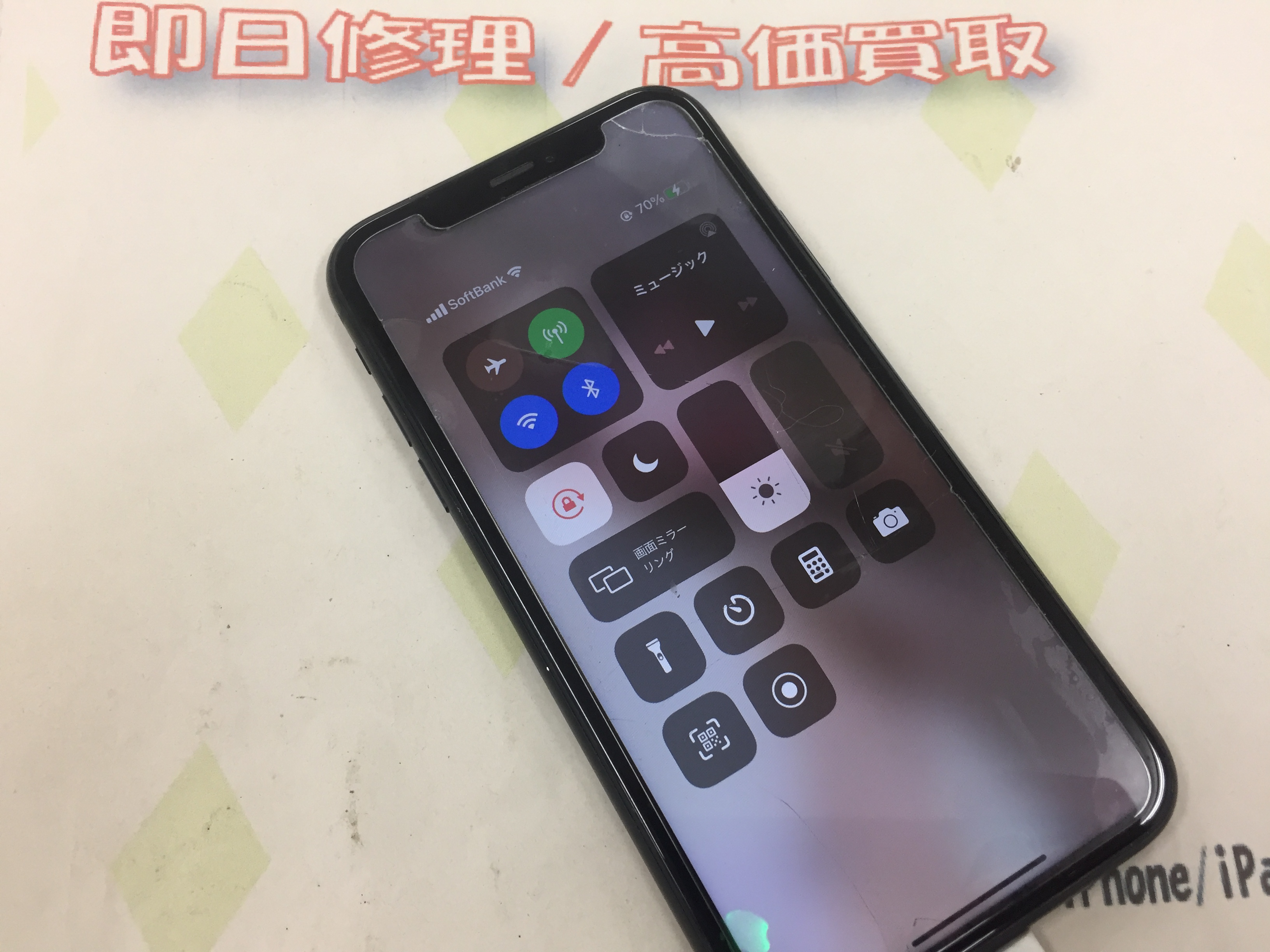 こちらの端末は以前に他店で画面修理をされた事があるそうでコピーの画面パーツが付いておりました。