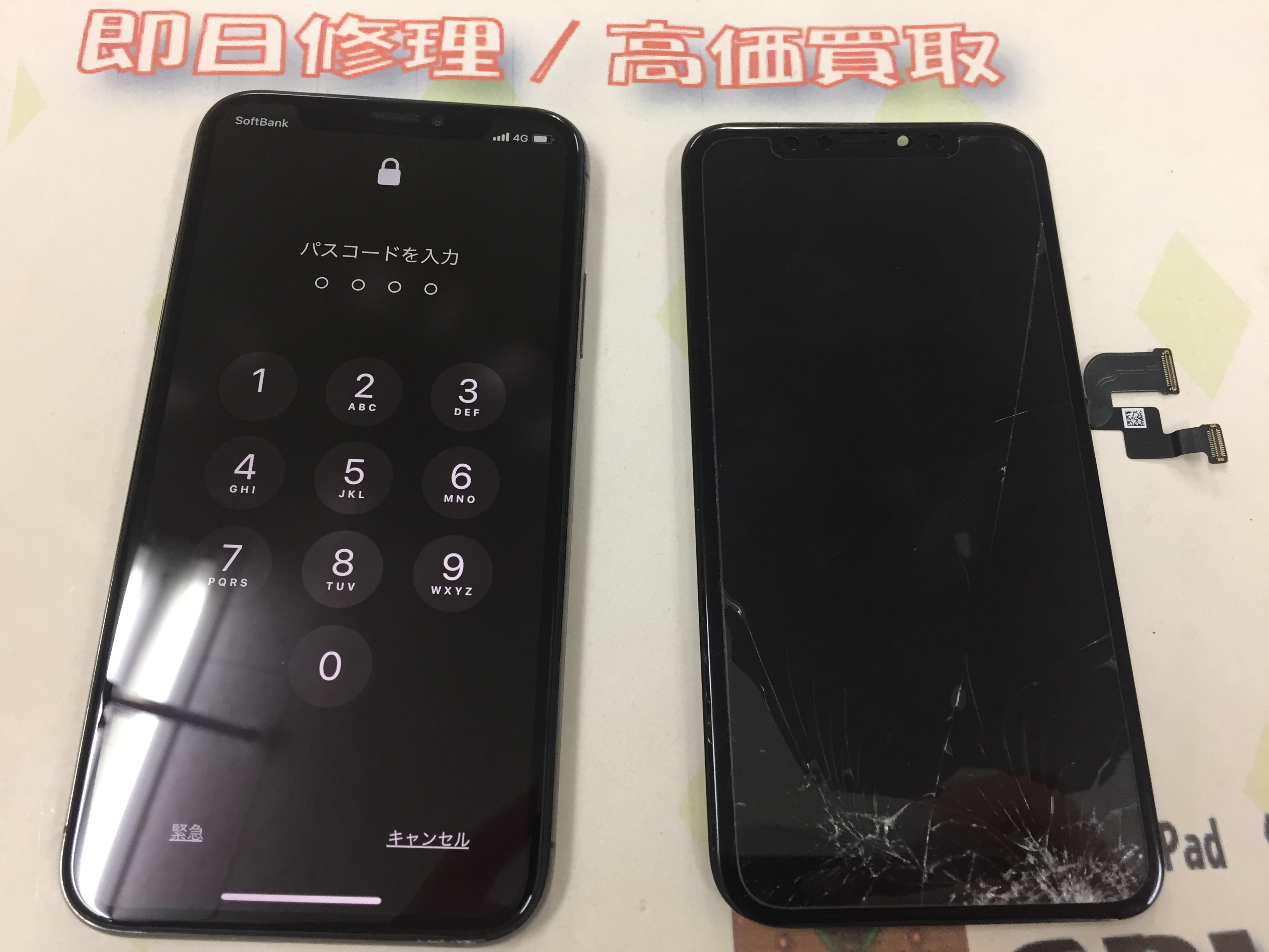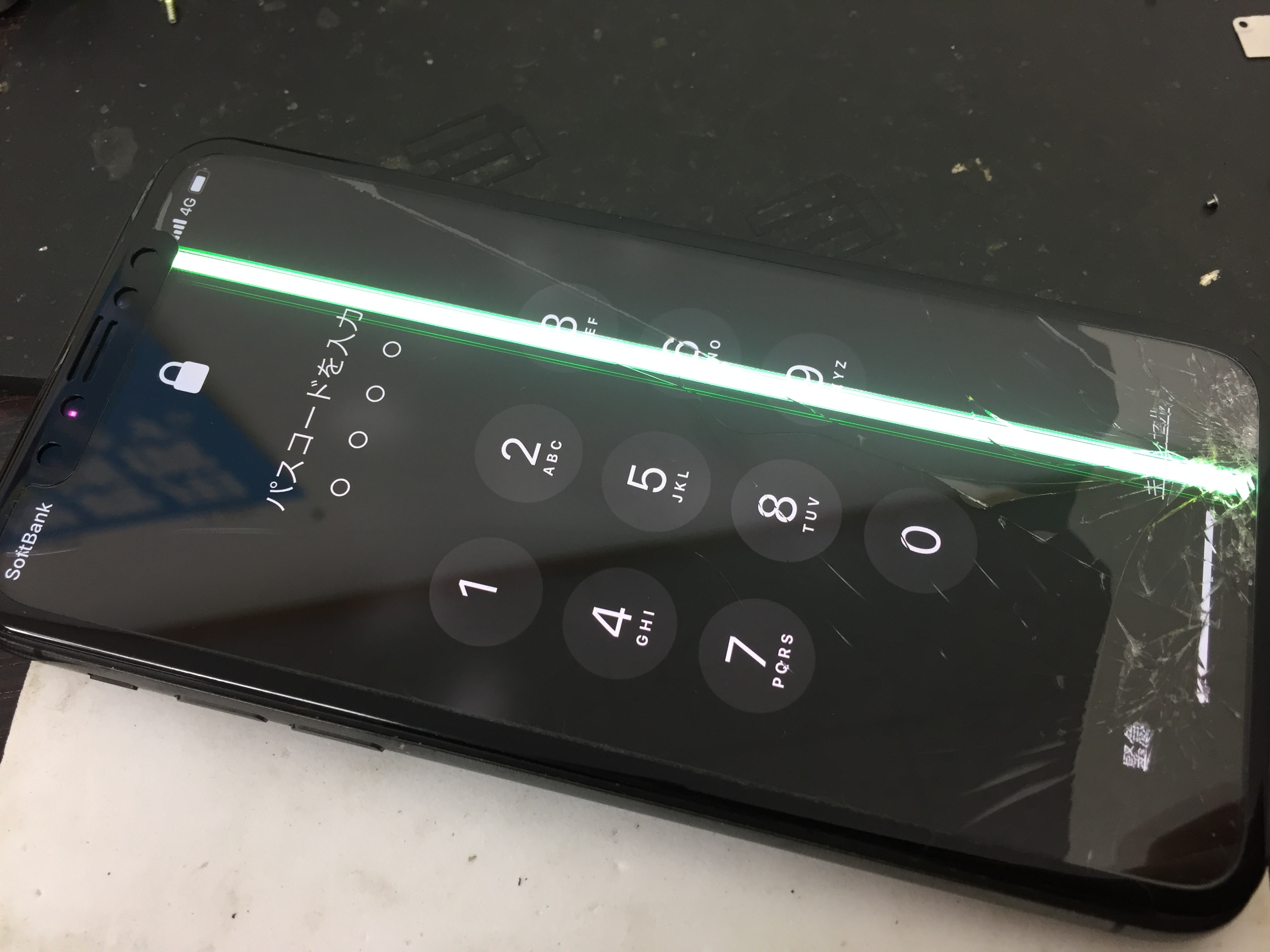 加古川市よりiPhone X ガラス割れ、表示不良修理をご依頼いただきました。
