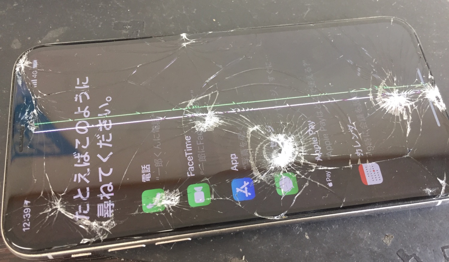 加古川市よりiPhone X ガラス割れ、表示不良修理をご依頼いただきました。