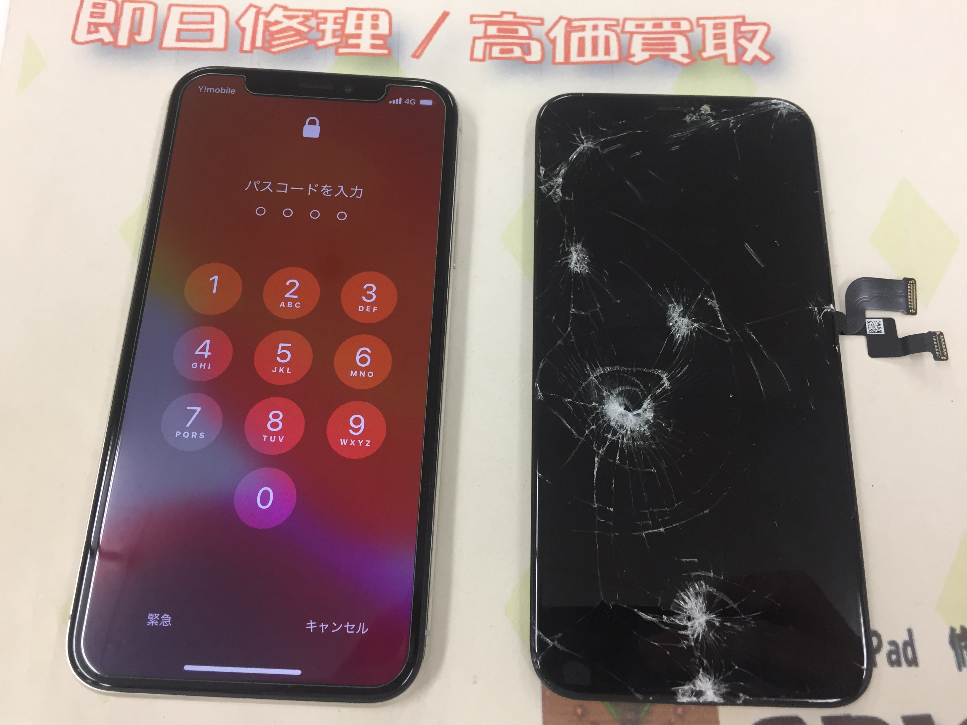 ◆加古川市よりiPhone X ガラス割れ、表示不良 -2020 10/3-