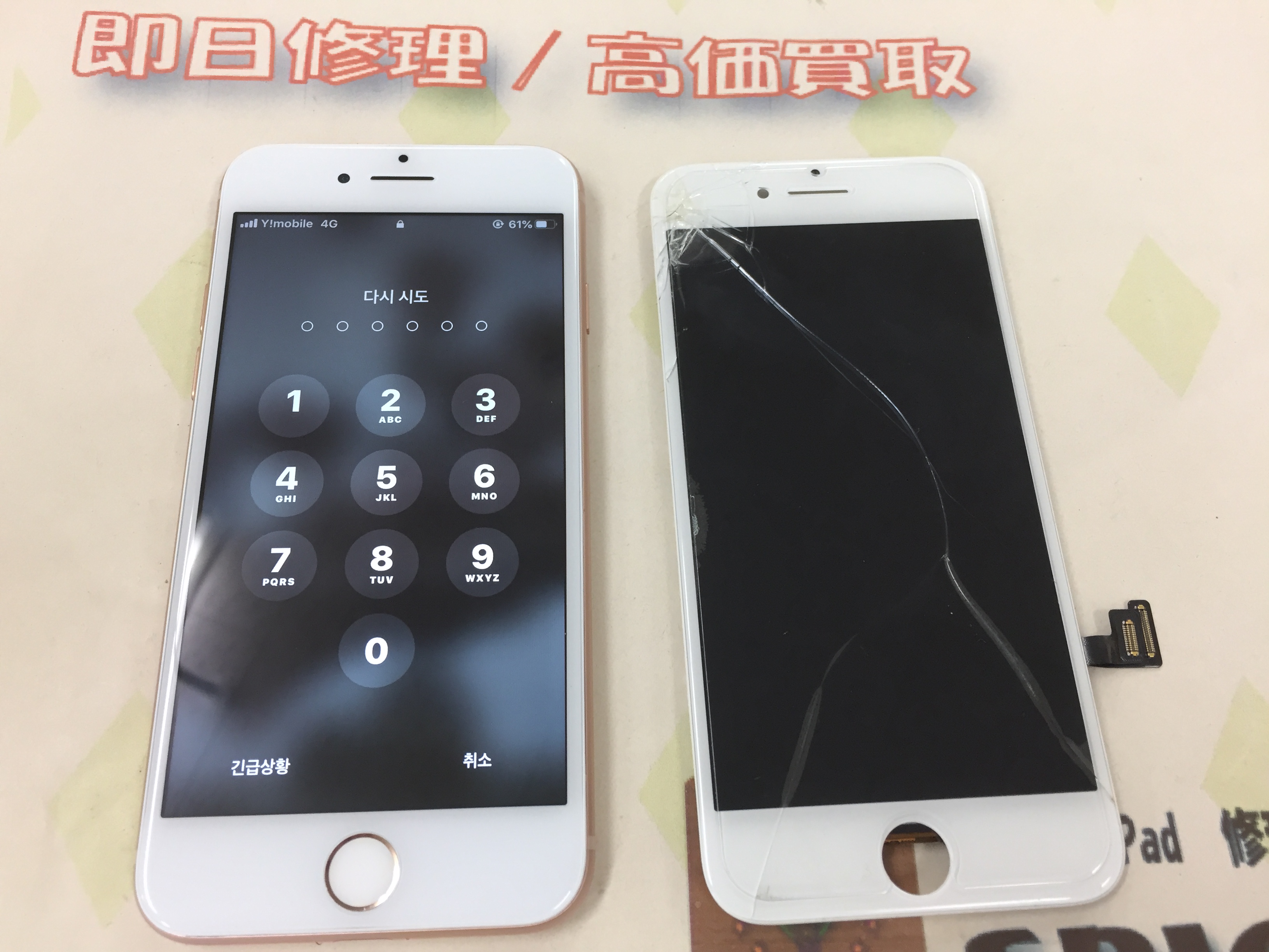 iPhone8 ガラス割れ→互換パーツ修理 ¥7,800(税込)