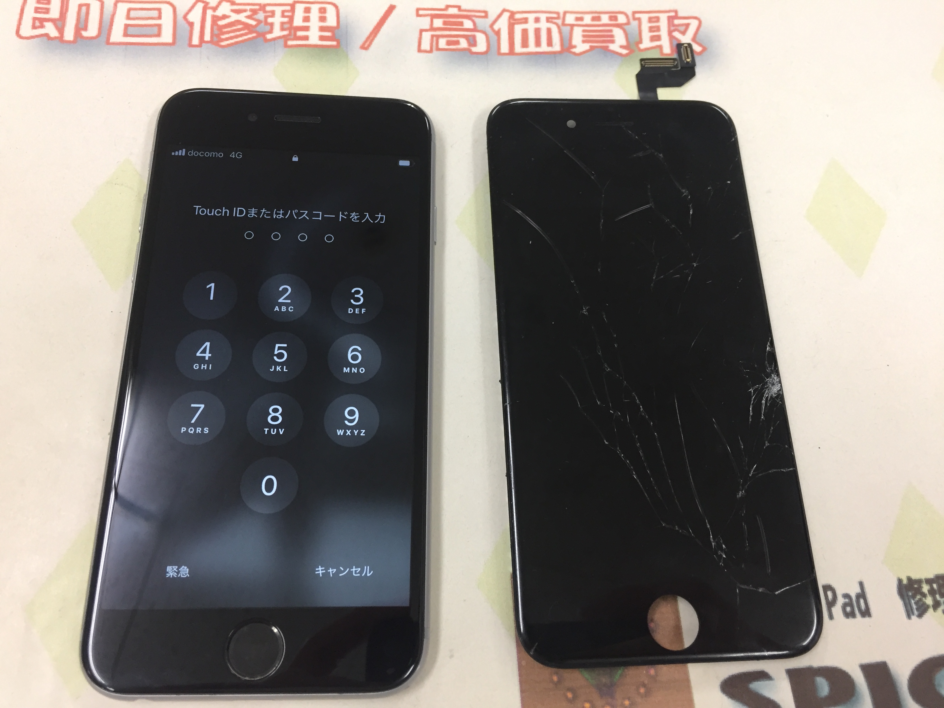 iPhone6s ガラス割れ→互換パーツ修理 ¥7,800(税込)