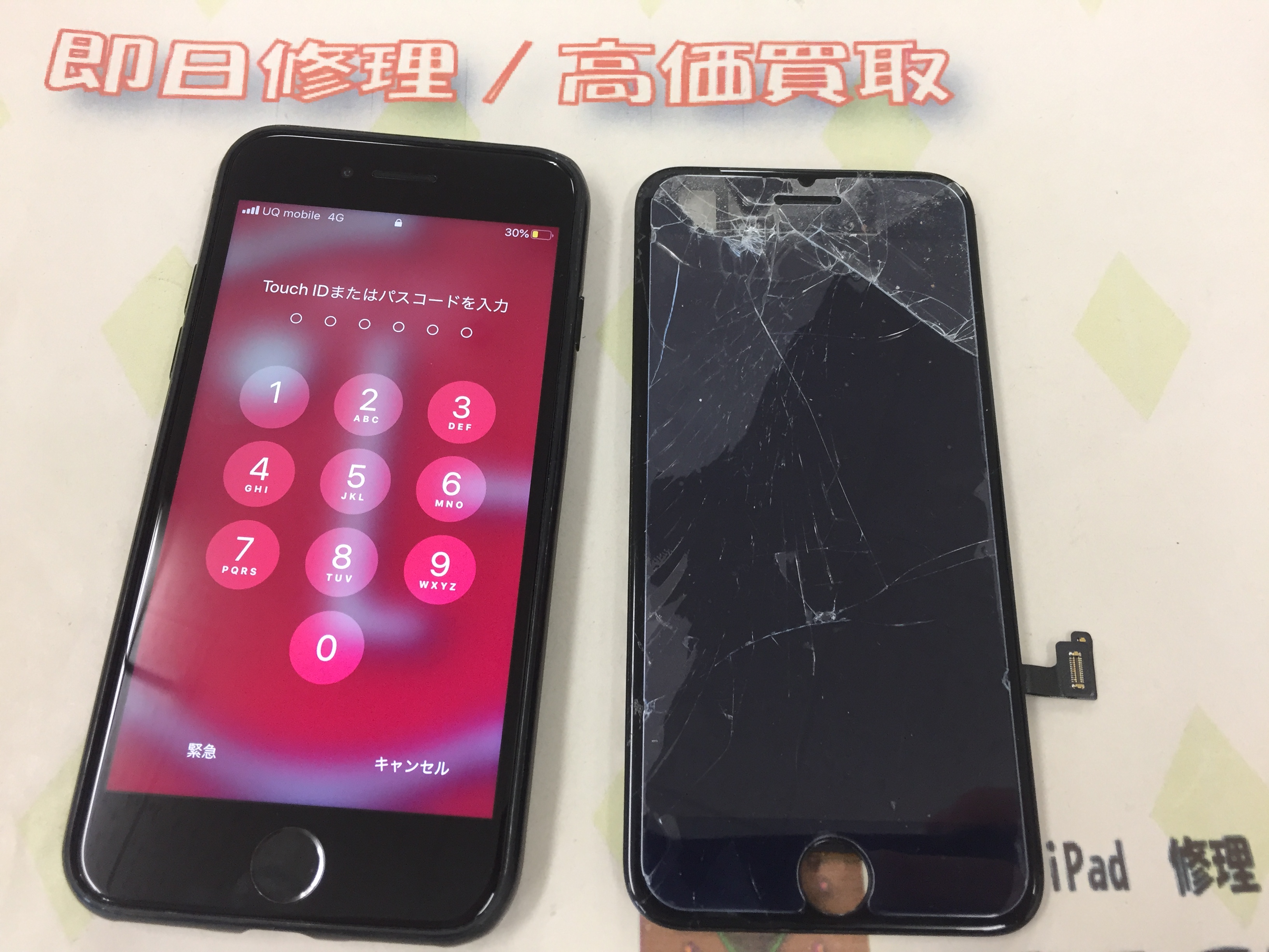 iPhone7 ガラス割れ/表示不良→互換パーツ ¥7,800(税込)