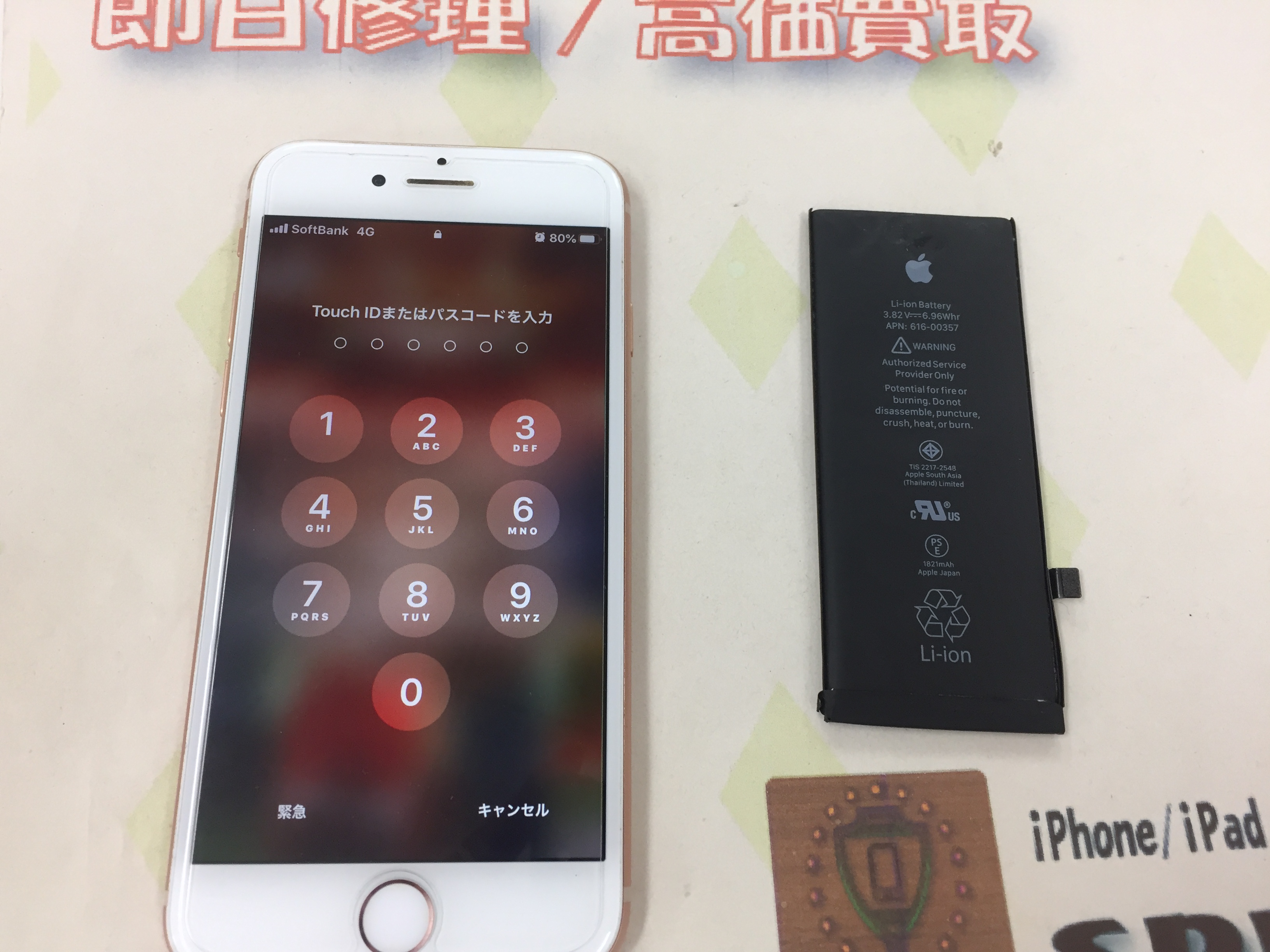 iPhone8 バッテリー交換 ¥7,800(税込)