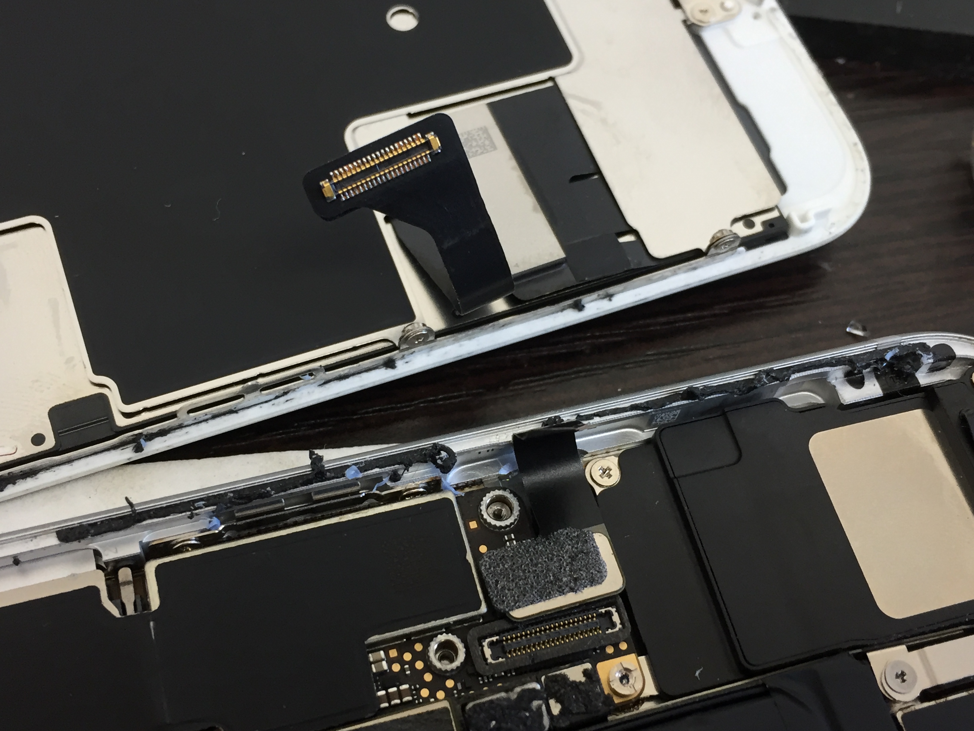 iPhone7以降の機種で自己分解されている方に多いのですがこのケーブルは構造上、画面を取り外す際に切れやすくなっております。