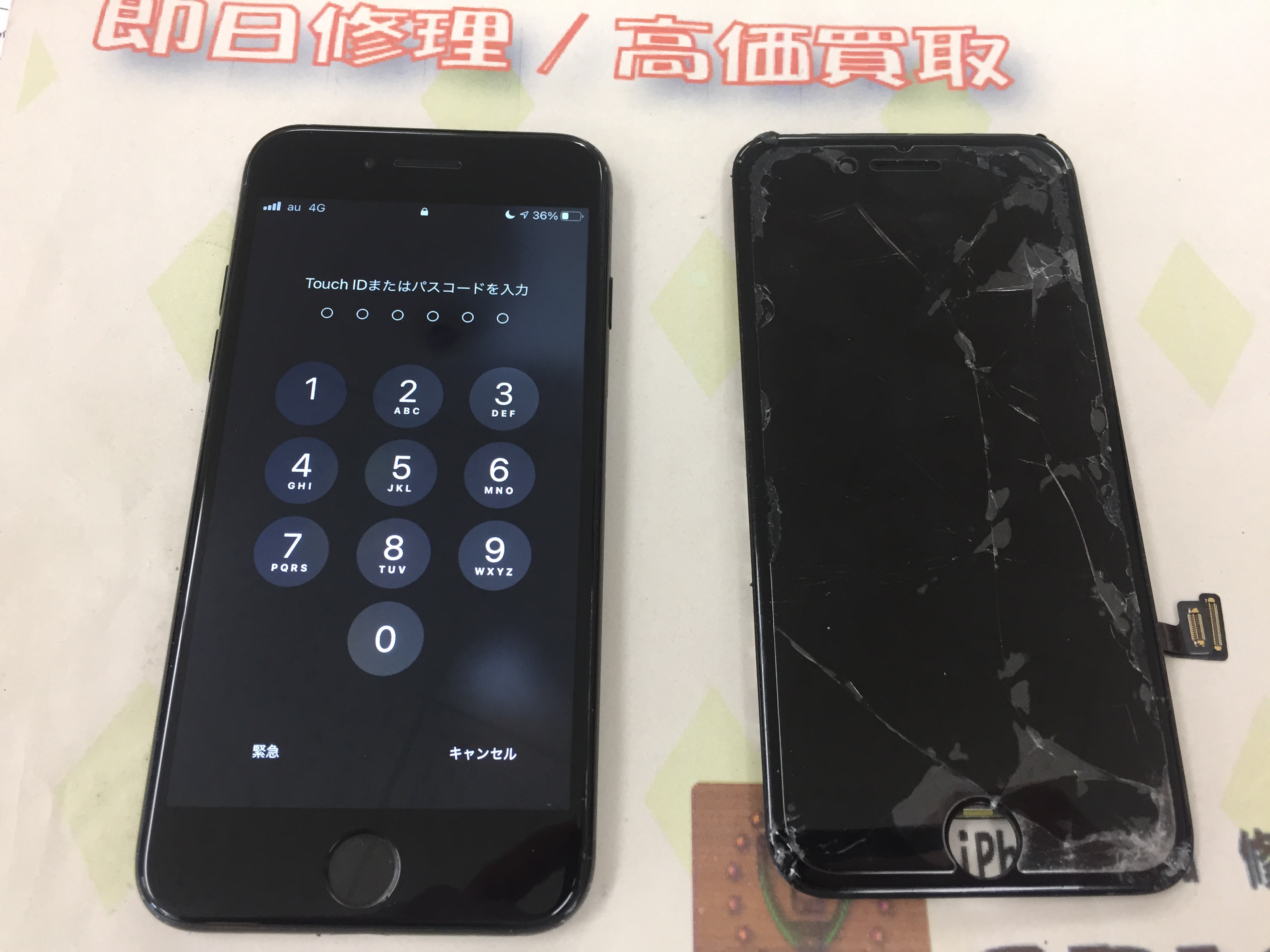 iPhone7 ガラス割れ/液晶不良→互換パーツ修理 ¥7,800(税込)