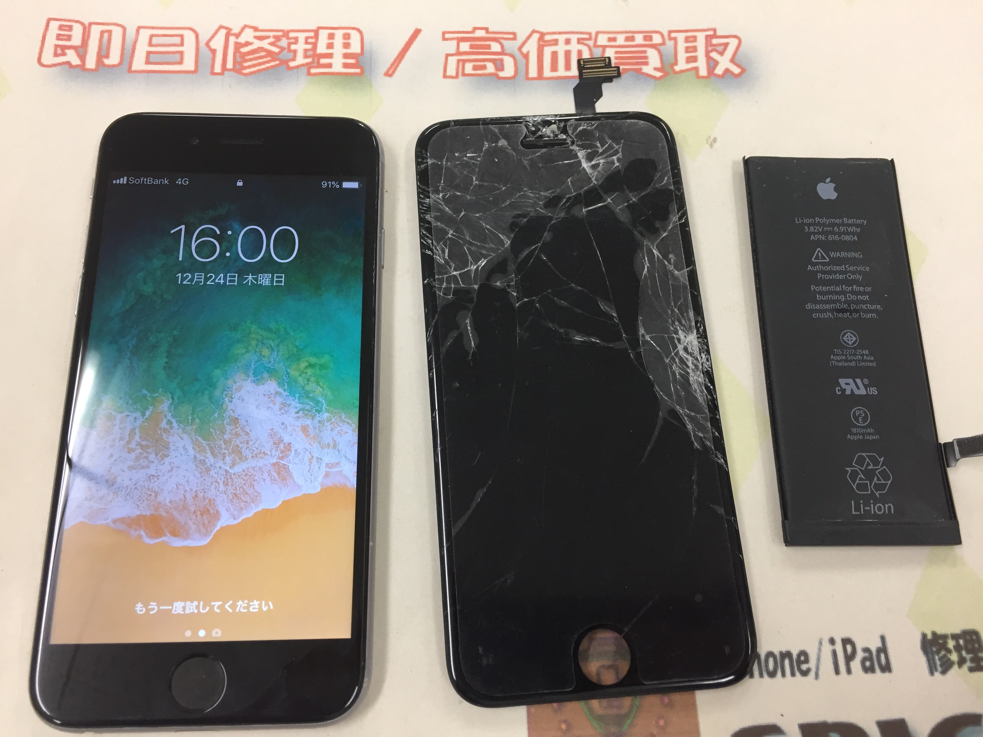 加古川市よりiPhone6 ガラス割れ、バッテリー交換をご依頼いただきました。