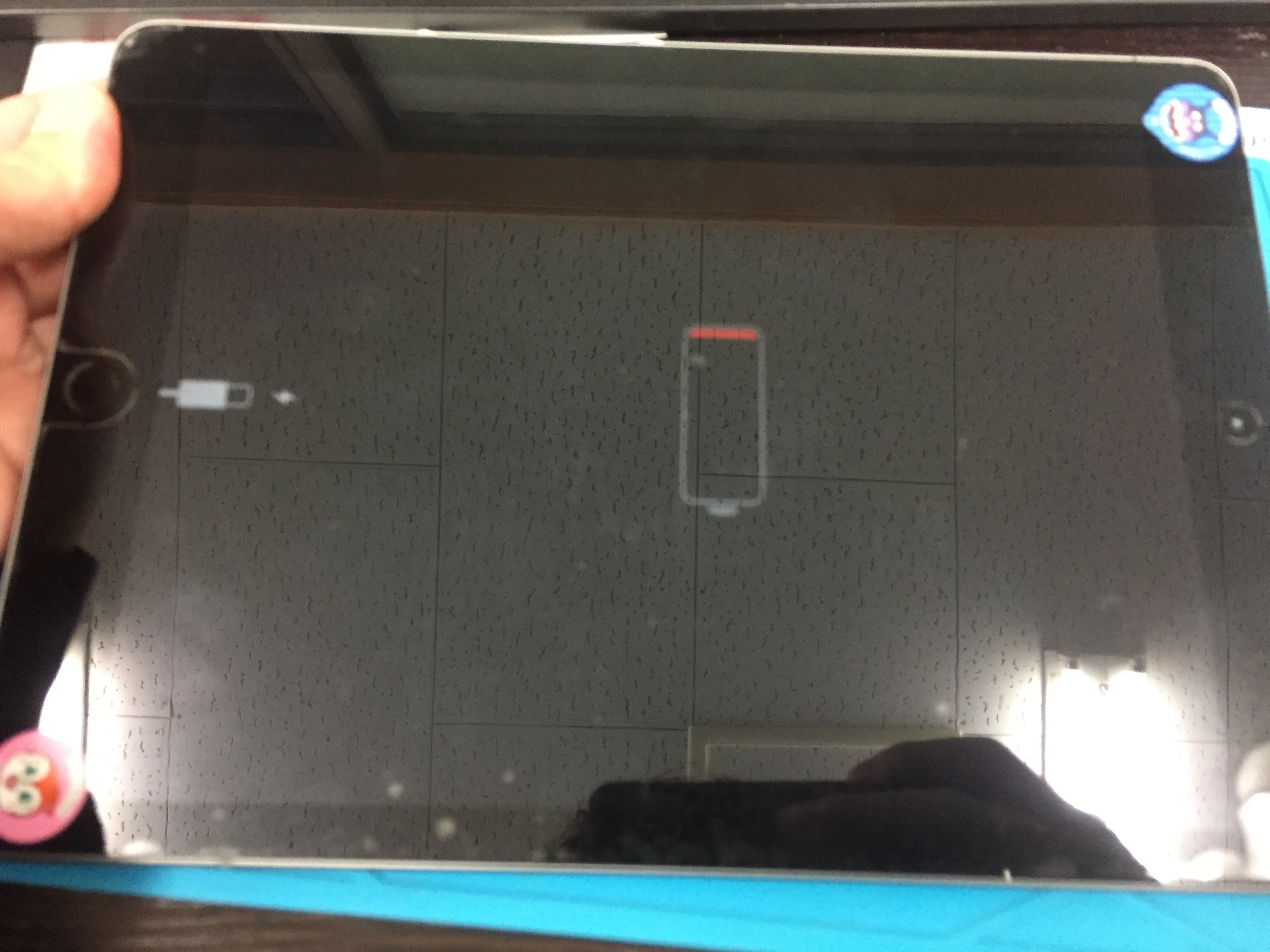 バッテリー切れのマークが表示され充電をしても一向に起動しない状態でした。