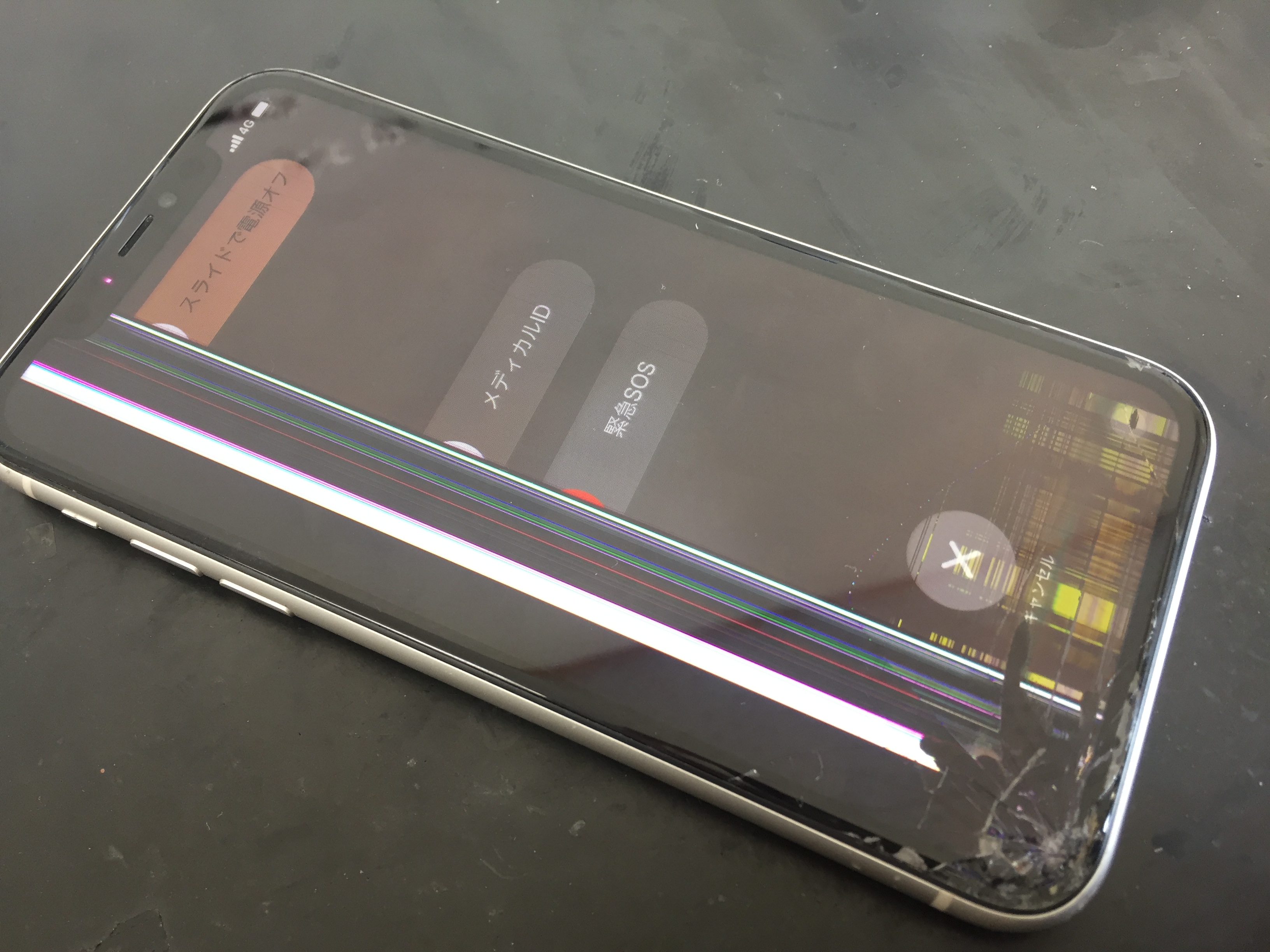 ガラス割れの影響で液晶表示がおかしくなっておりましたがお時間40分ほどで元通りに修理完了です。