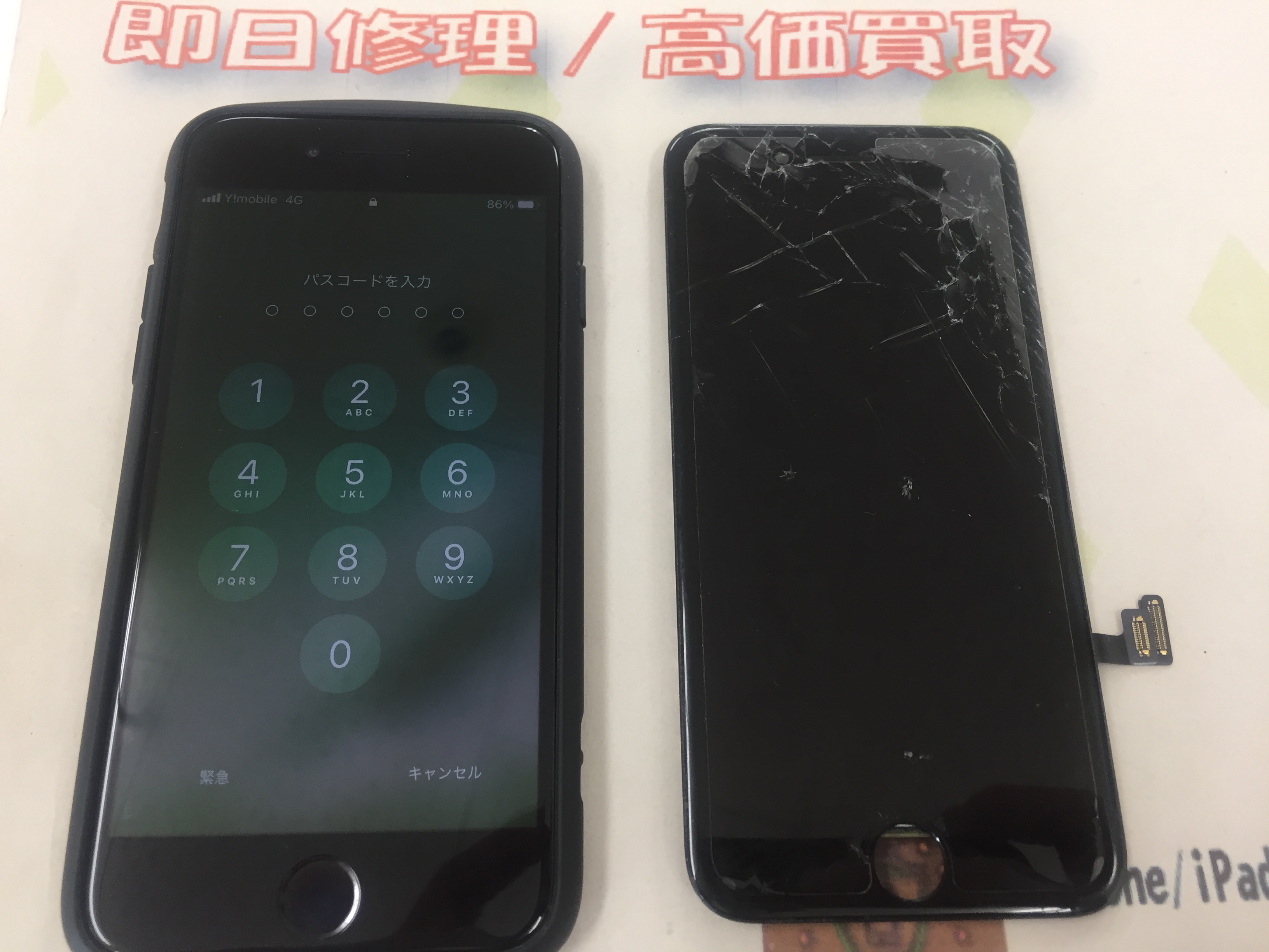 iPhone7 ガラス割れ→互換パーツ修理 ¥7,800(税込)