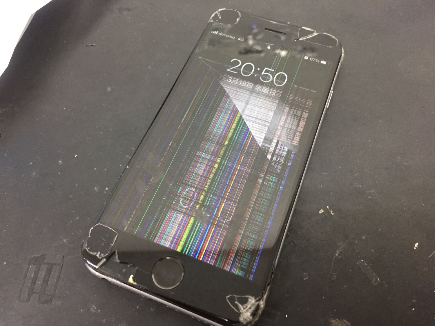 画面割れの影響で表示不良、タッチ操作不可となっておりホームボタンも反応しない状態でした。
