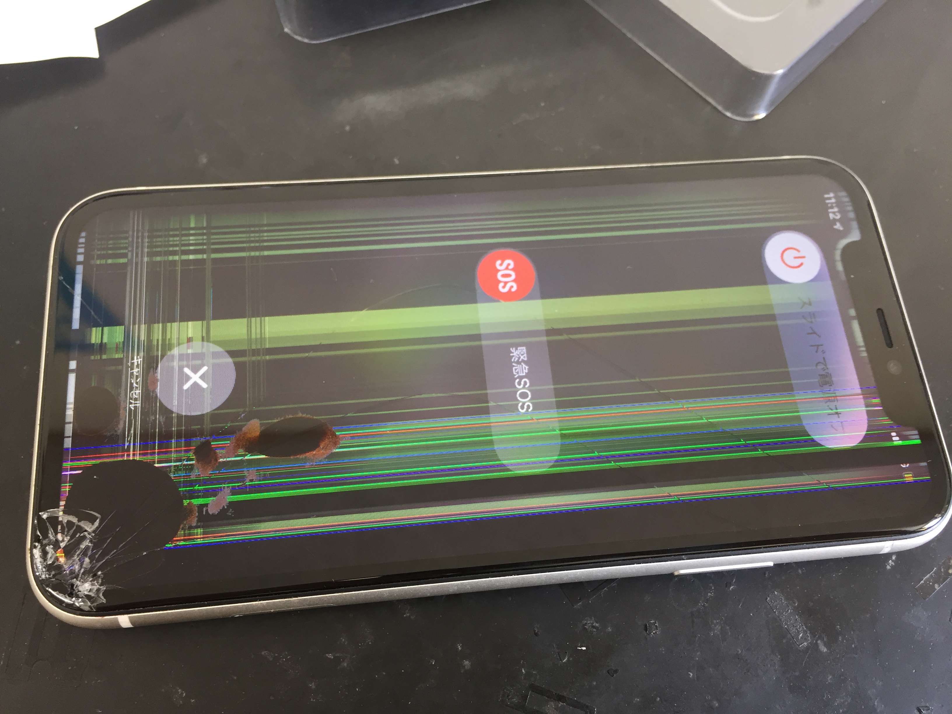 ガラス割れの影響で液晶表示がおかしくなっておりましたがお時間40分ほどで元通りに修理完了です。