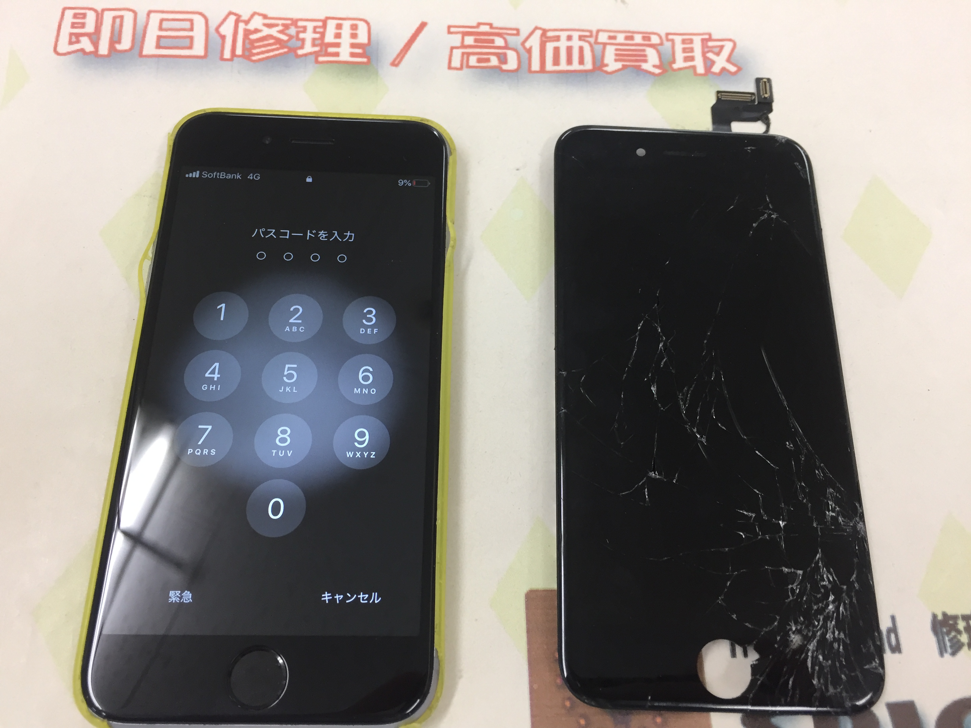 iPhone6s ガラス割れ→互換パーツ修理 ¥7,800(税込)
