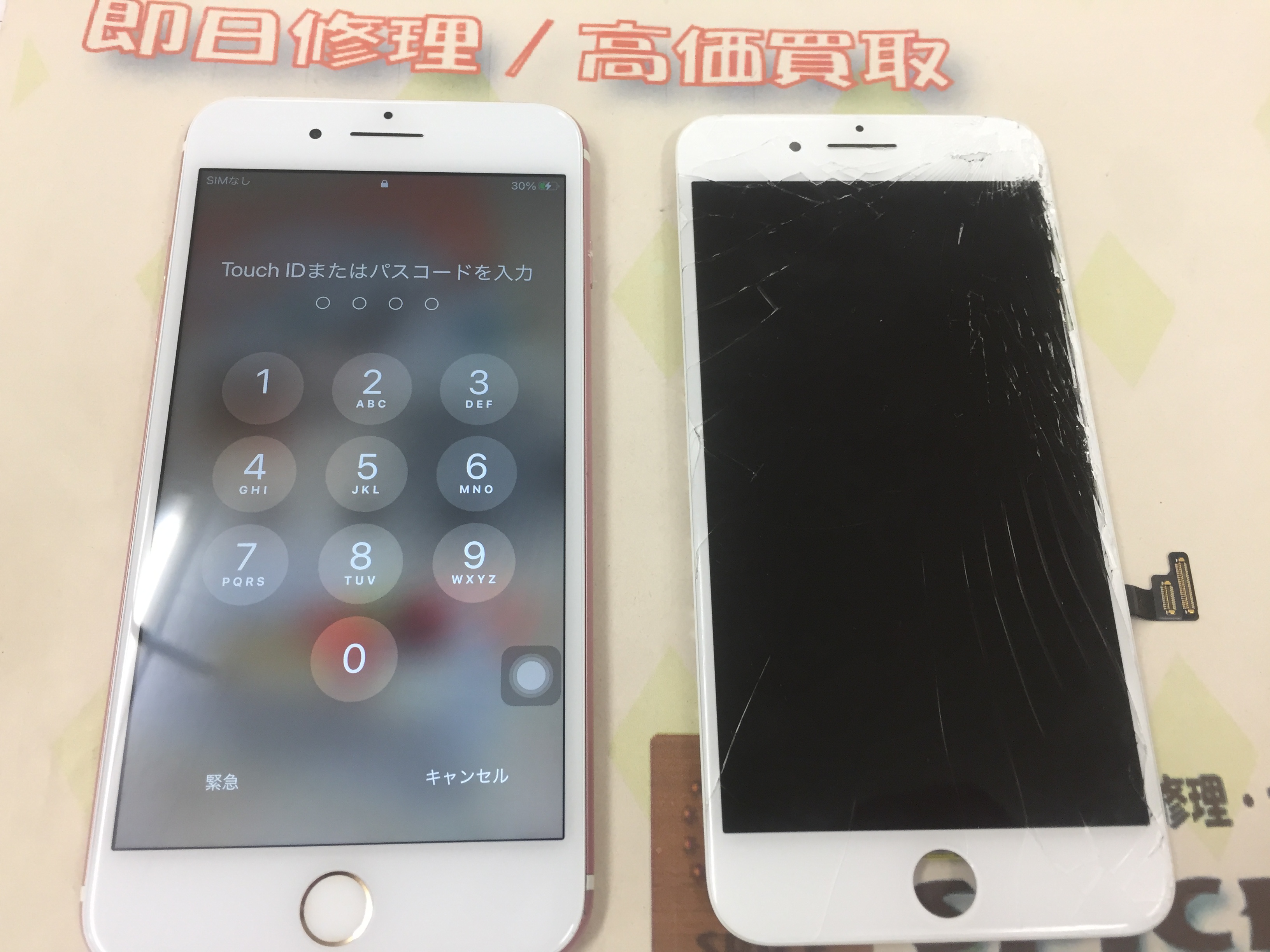 iPhone7 Plus ガラス割れ/タッチ不良→互換パーツ修理 ¥8,000(税込)