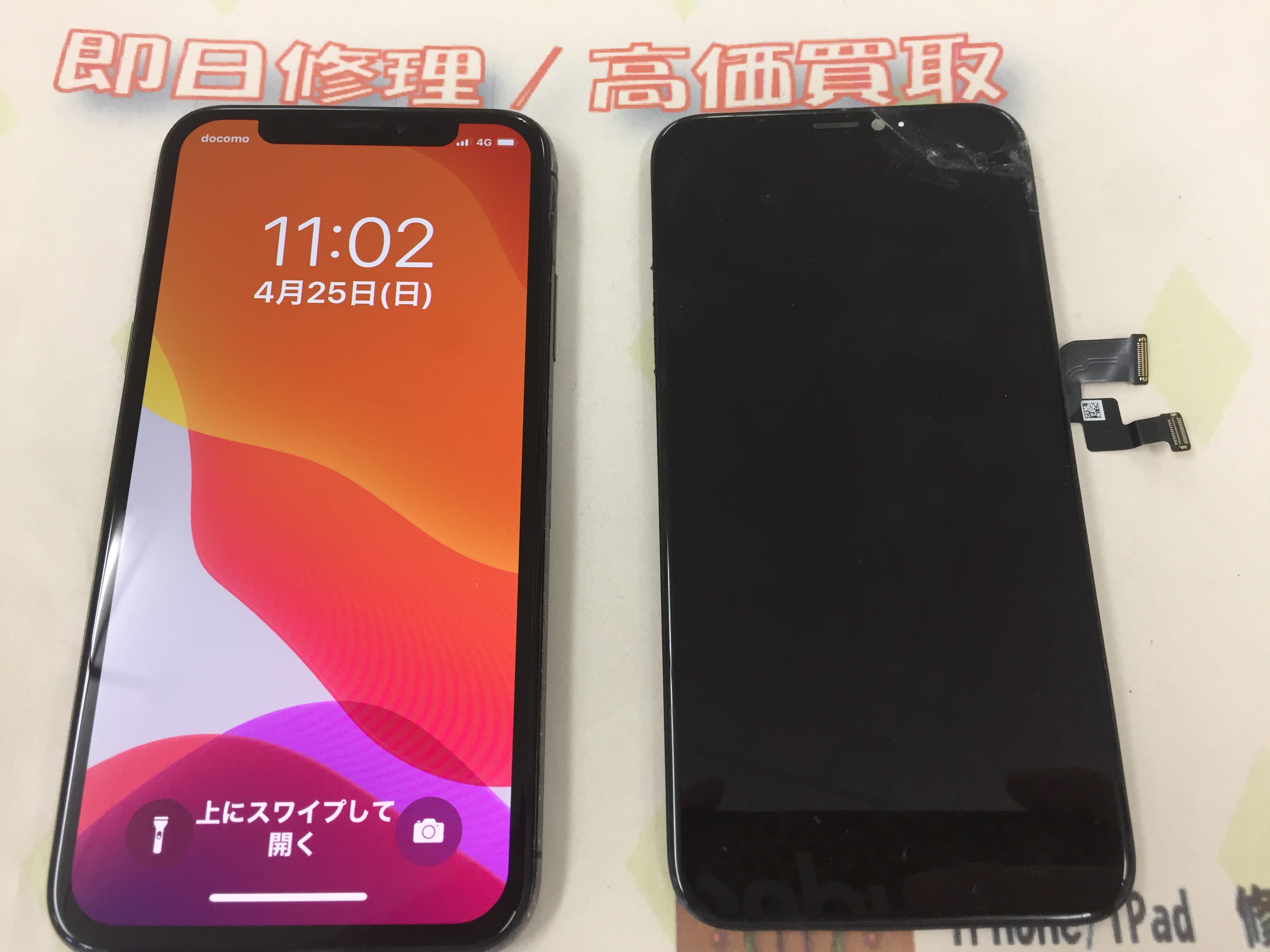iPhone X ガラス割れ/タッチ不良→互換パーツ修理 ¥15,800(税込)
