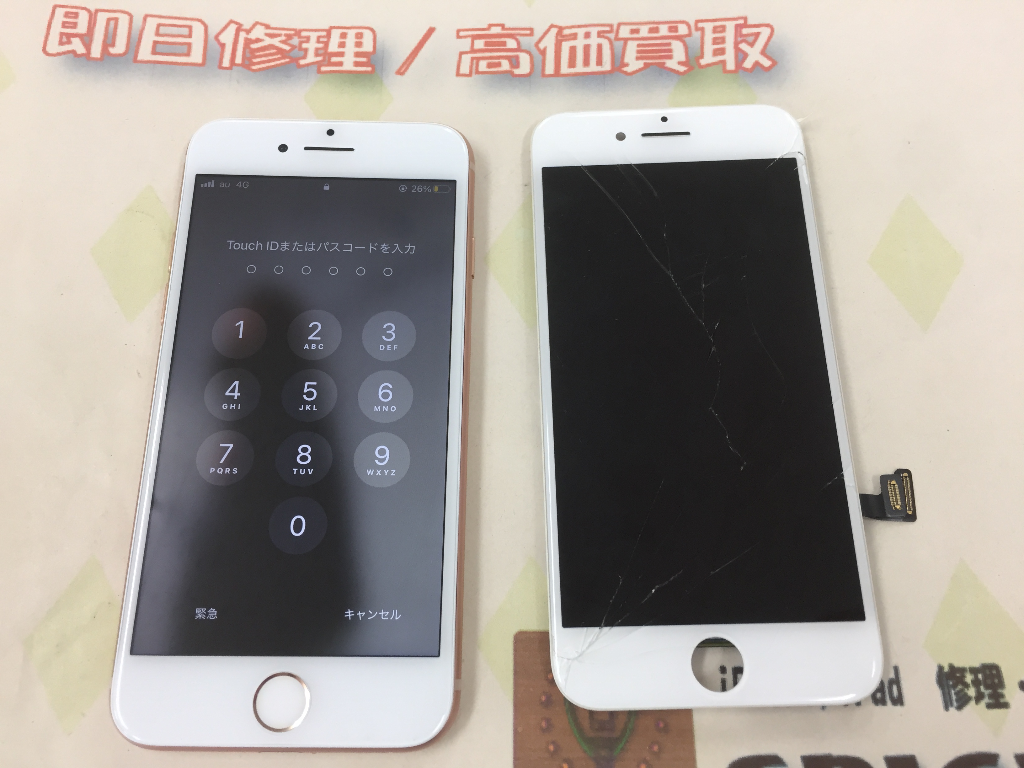 iPhone8 ガラス割れ→互換パーツ修理 ¥7,800(税込)