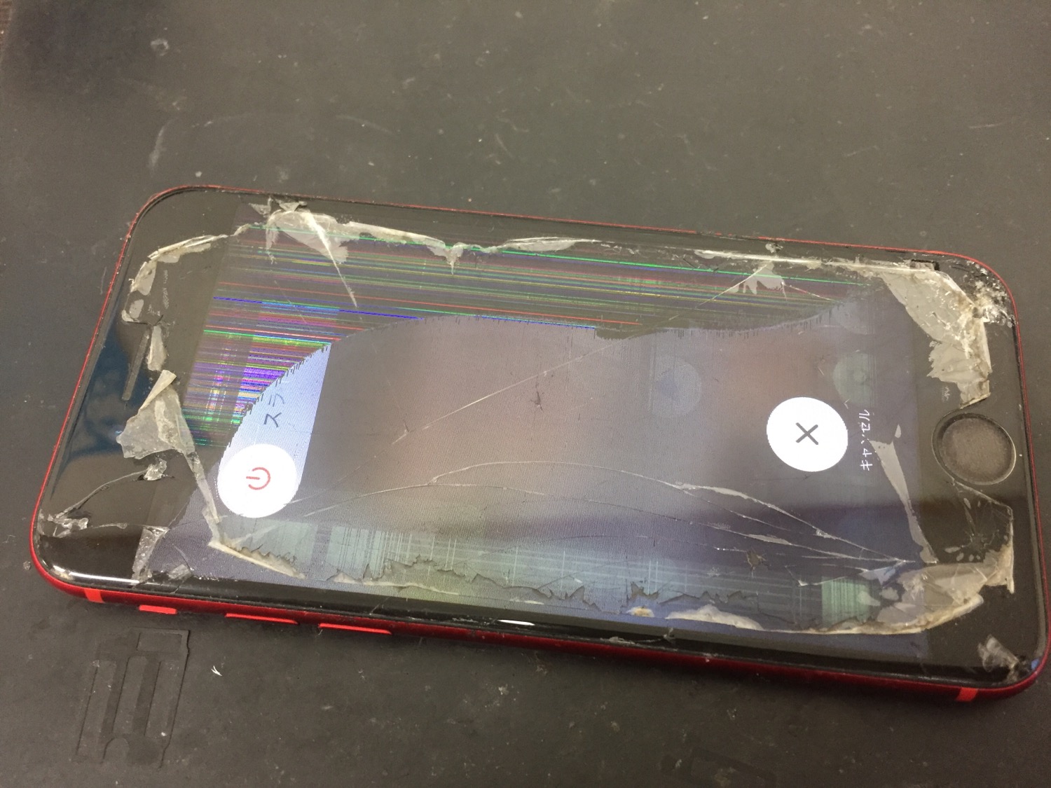 画面が激しく損傷し液晶表示までおかしくなり操作出来ない状態でした。