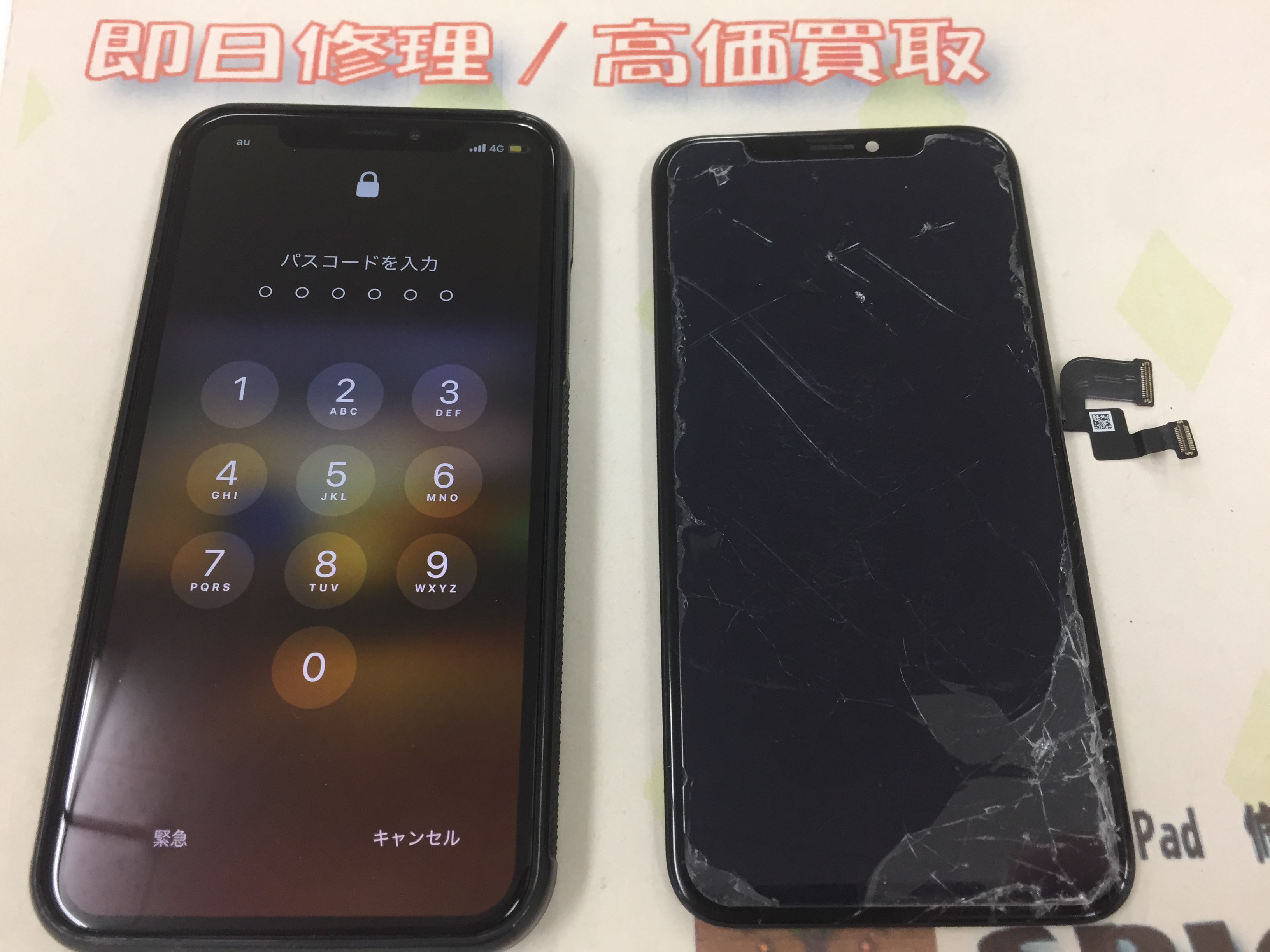 iPhone XS ガラス割れ/タッチ不良→互換パーツ(有機ELパネル) ¥15,800(税込)