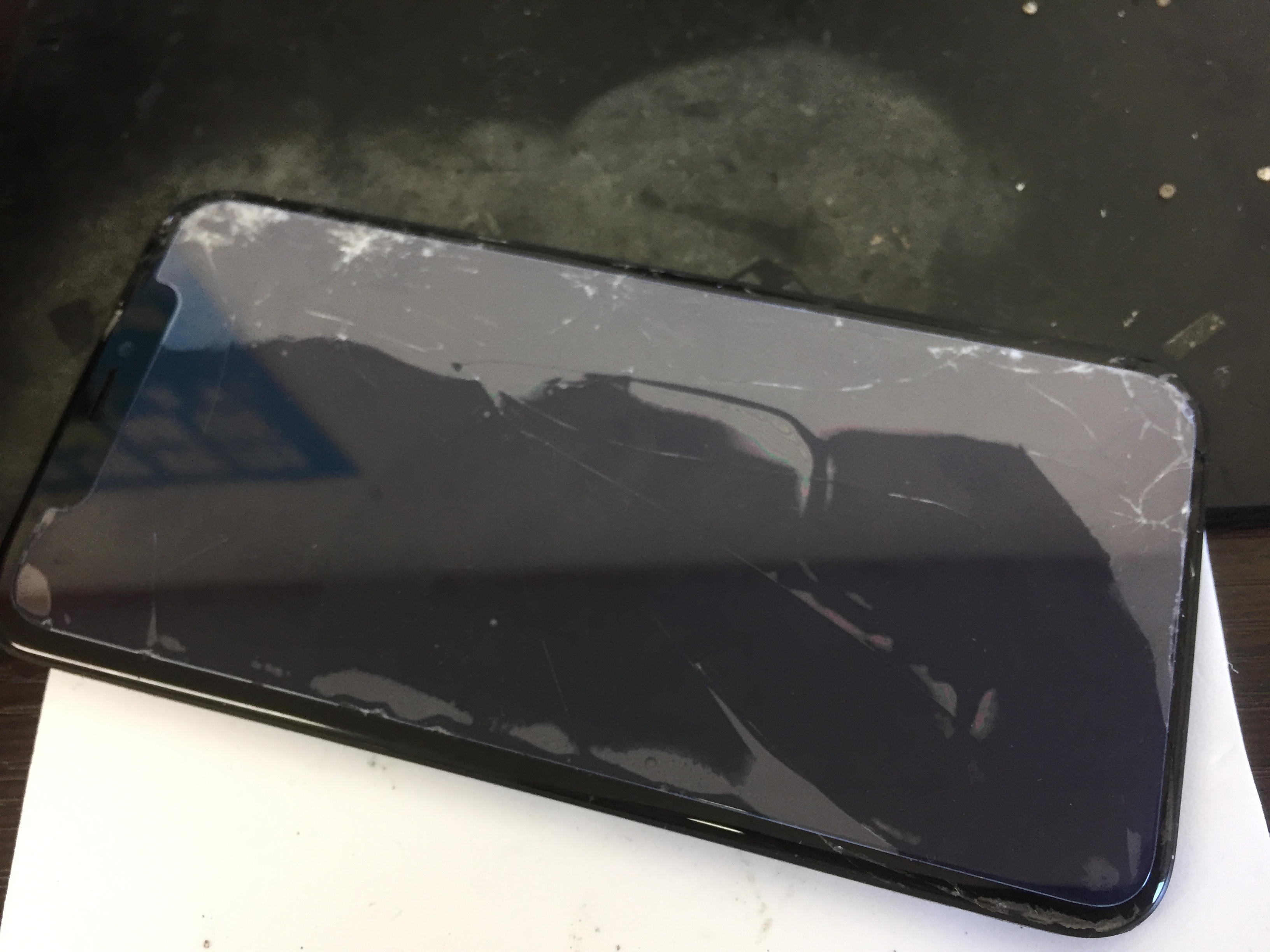 画面全体が激しく割れておりましたがお時間20分ほどで元通りに修理完了です。