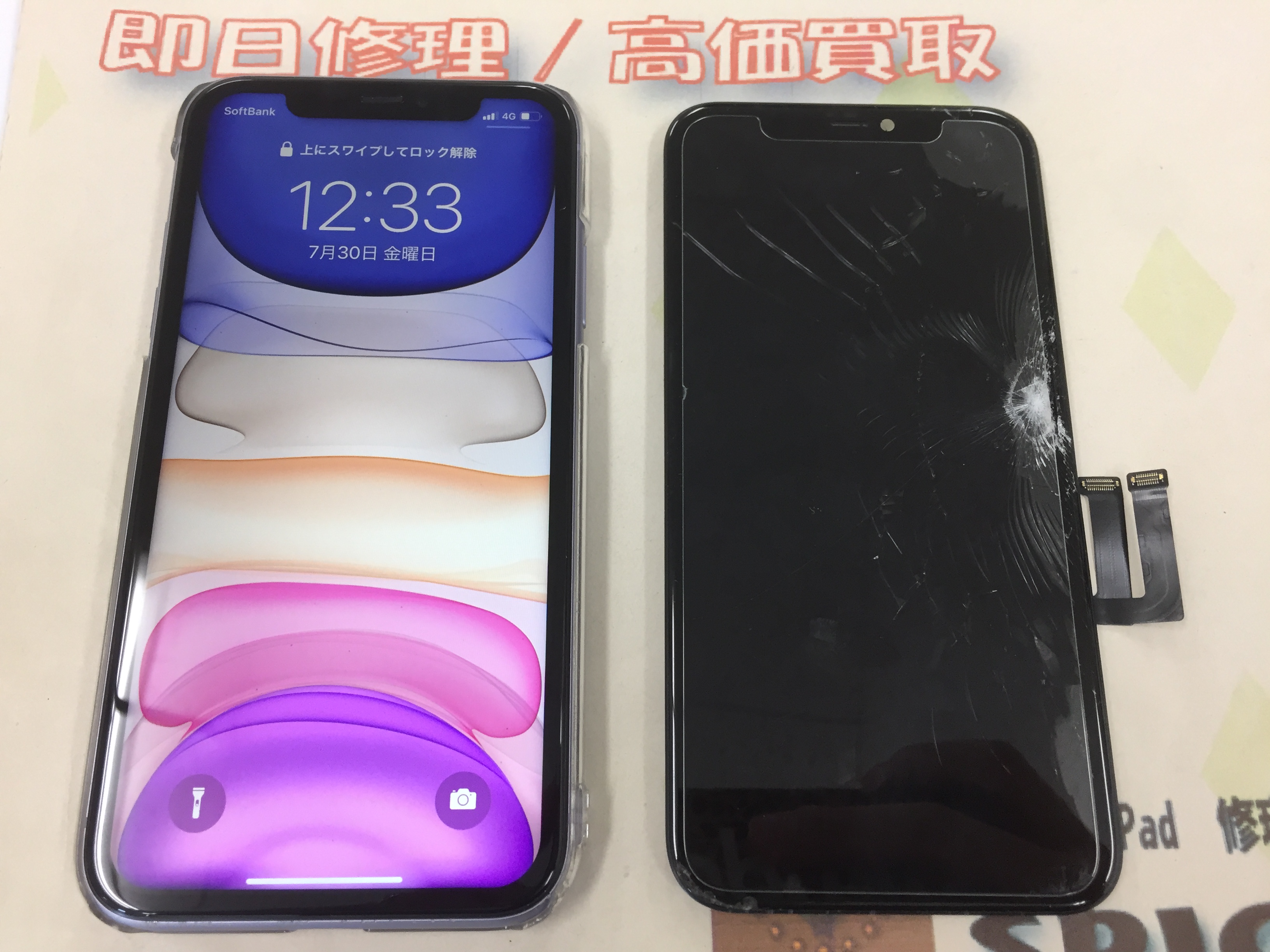 iPhone11 ガラス割れ/タッチ不良→互換パーツ ¥19,800(税込)