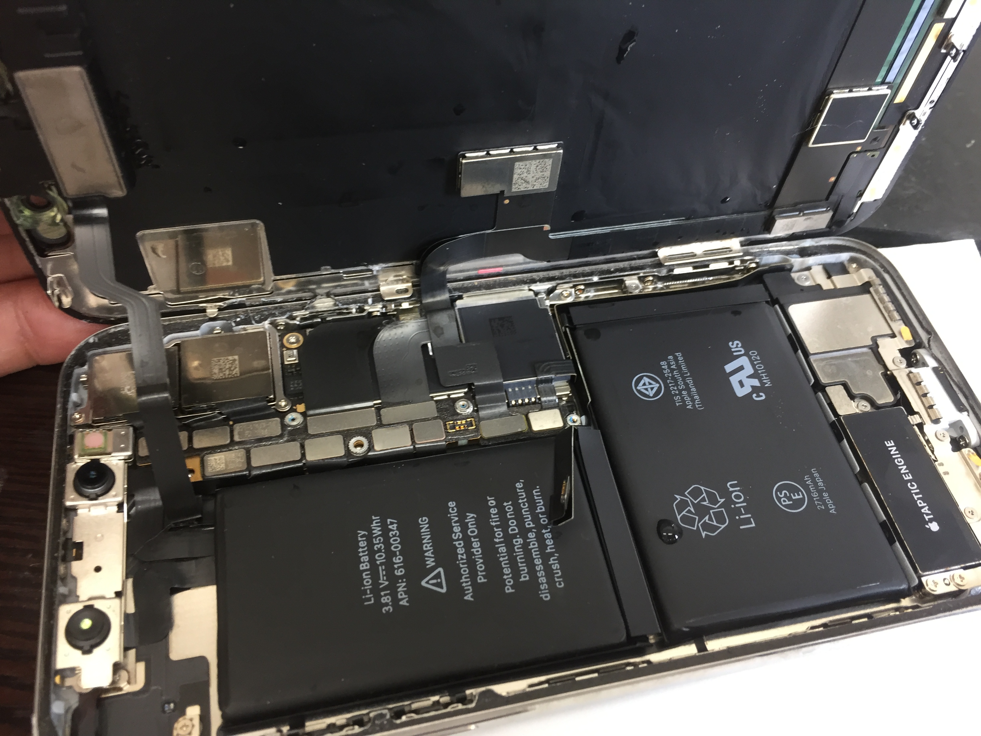 iPhone Xシリーズはこれまでの基板と構造が大きく変更され2枚の基板が2階建てのように実装されております。