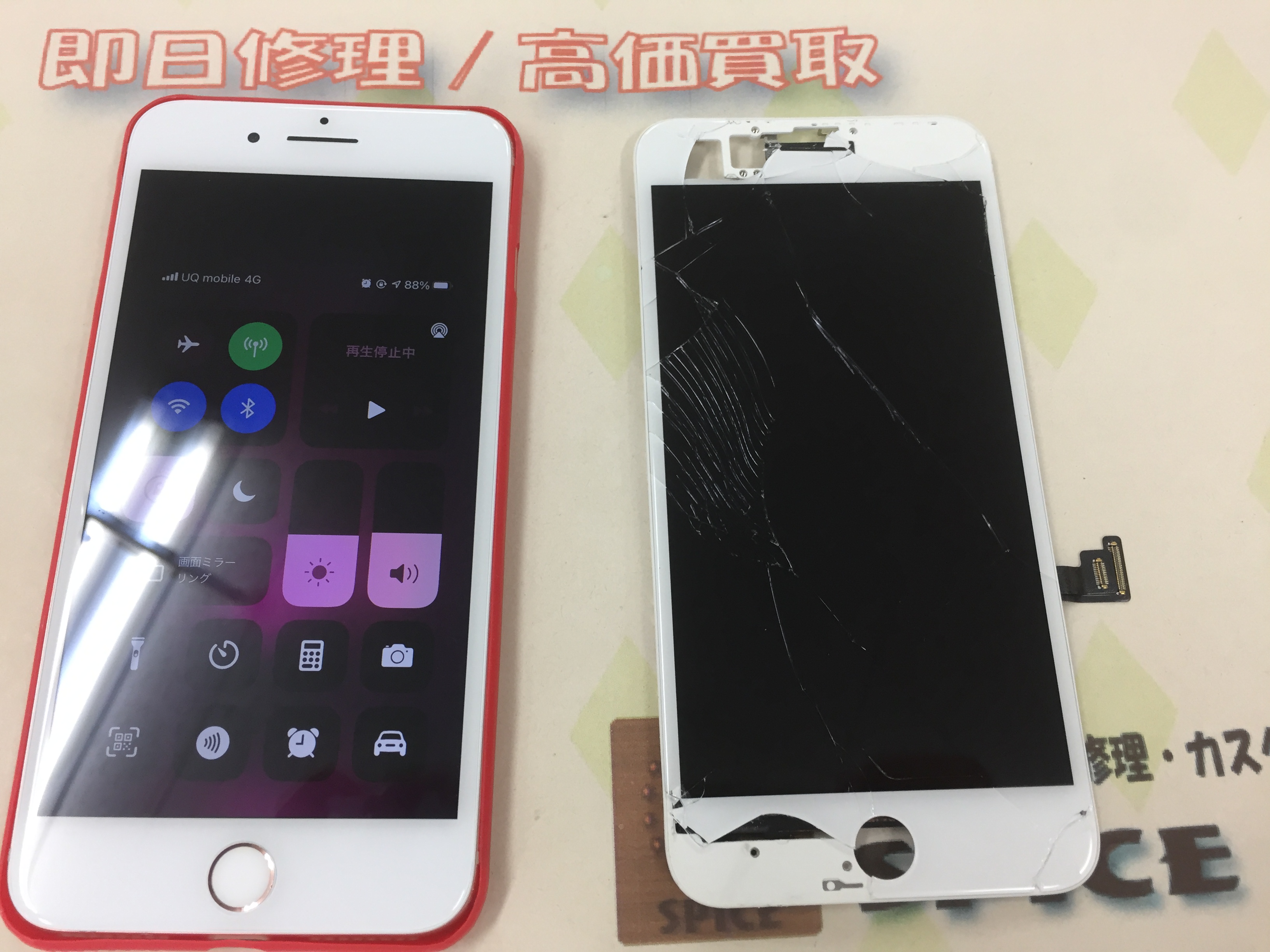 iPhone8 Plus ガラス割れ/タッチ不良→互換パーツ ¥8,000(税込)
