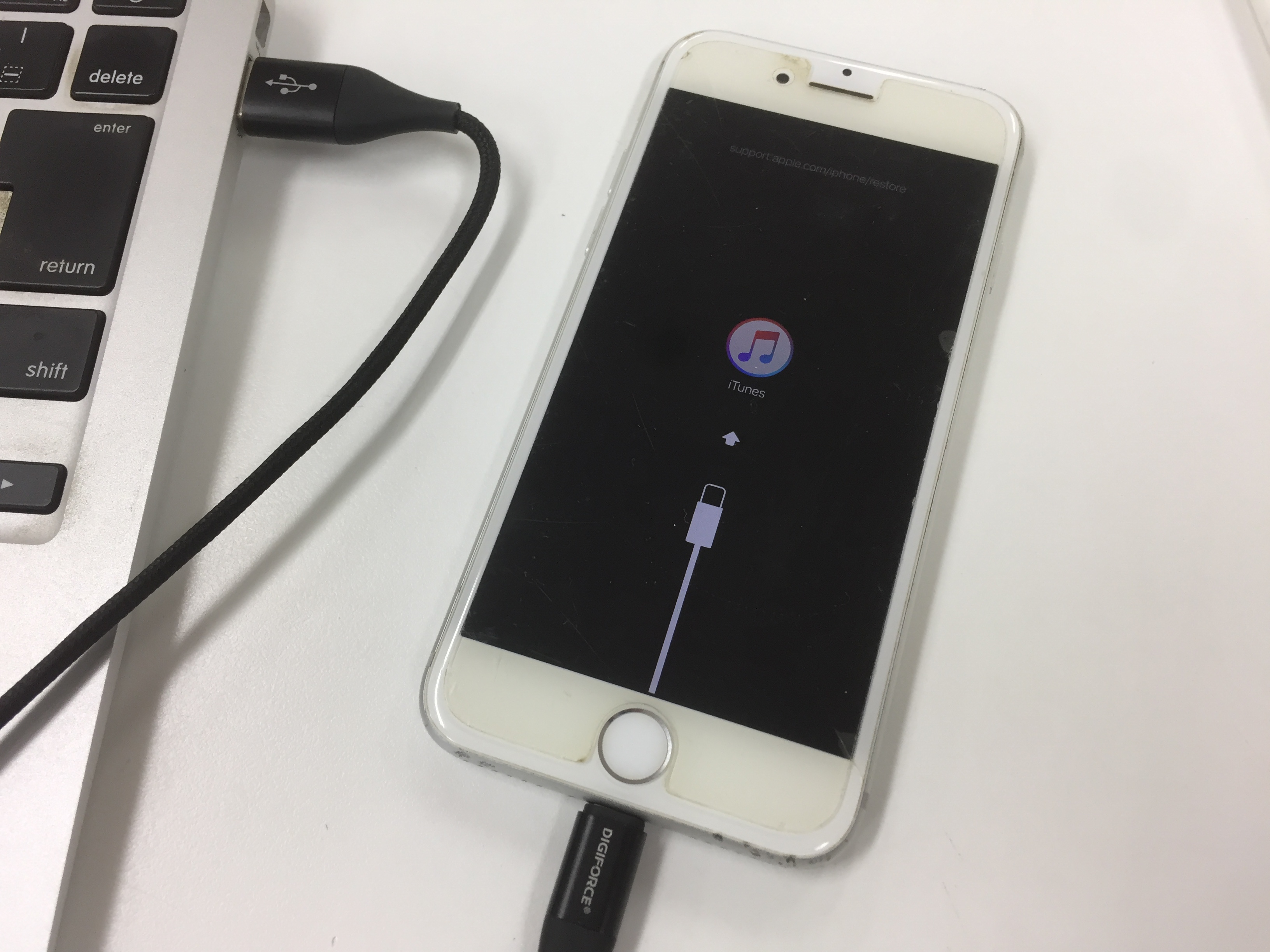 以前から調子悪かったそうですが画面にiTunesに接続のマークが表示されるリカバリーモードの状態でご来店です。