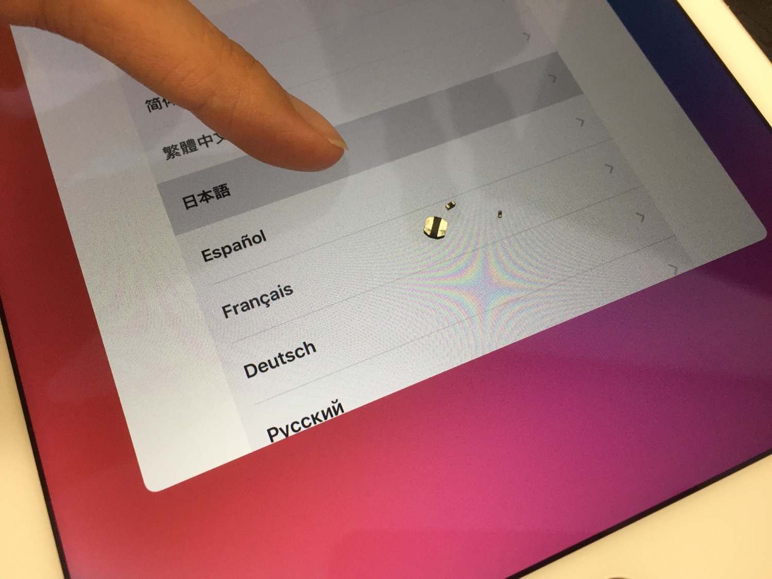 受付時に確認してみると画面全体全くタッチの反応がなく初期化された後の初期設定から先に進めません。