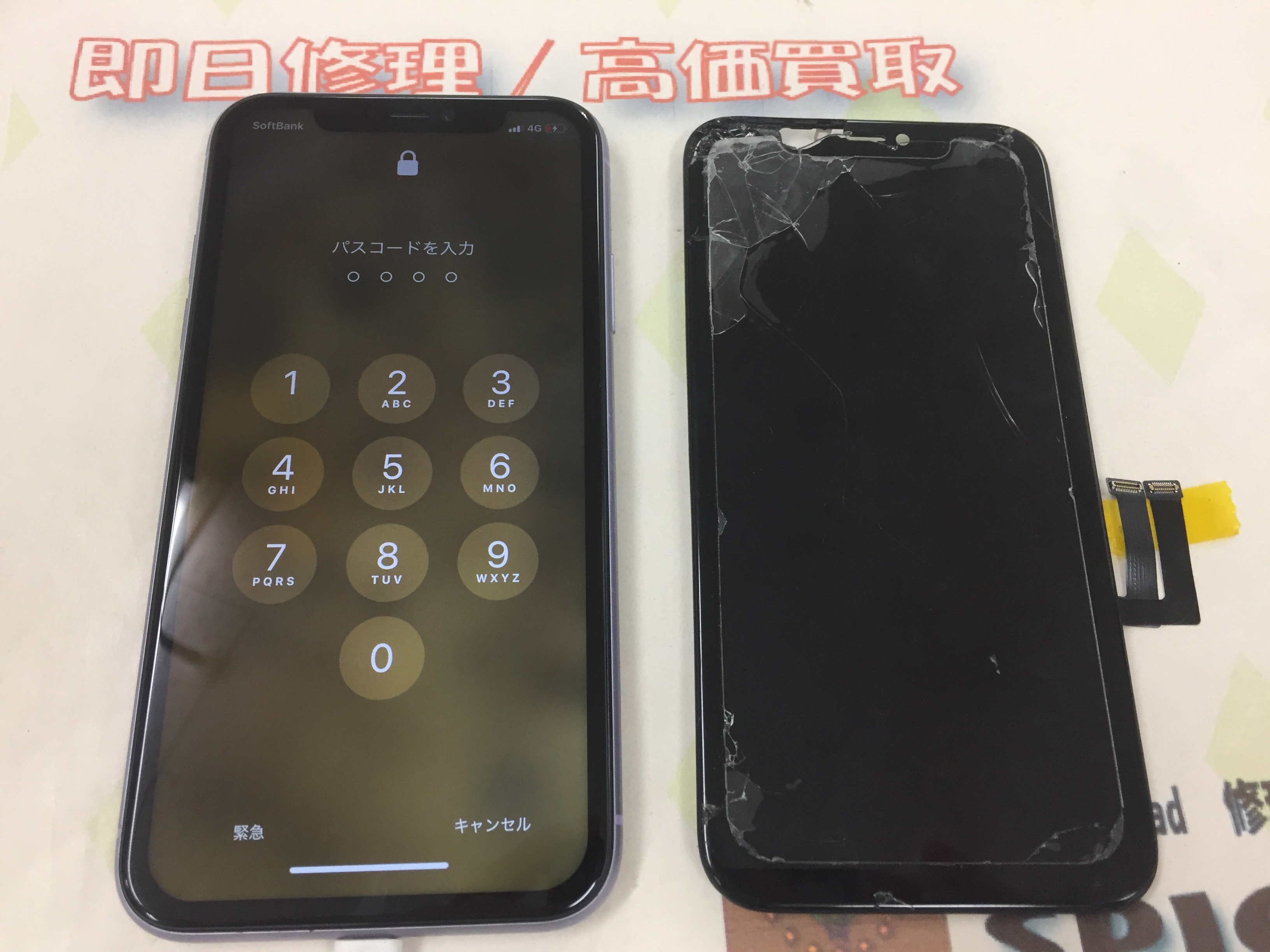 神戸市よりiPhone11 ガラス割れ/タッチ不良修理をご依頼いただきました。