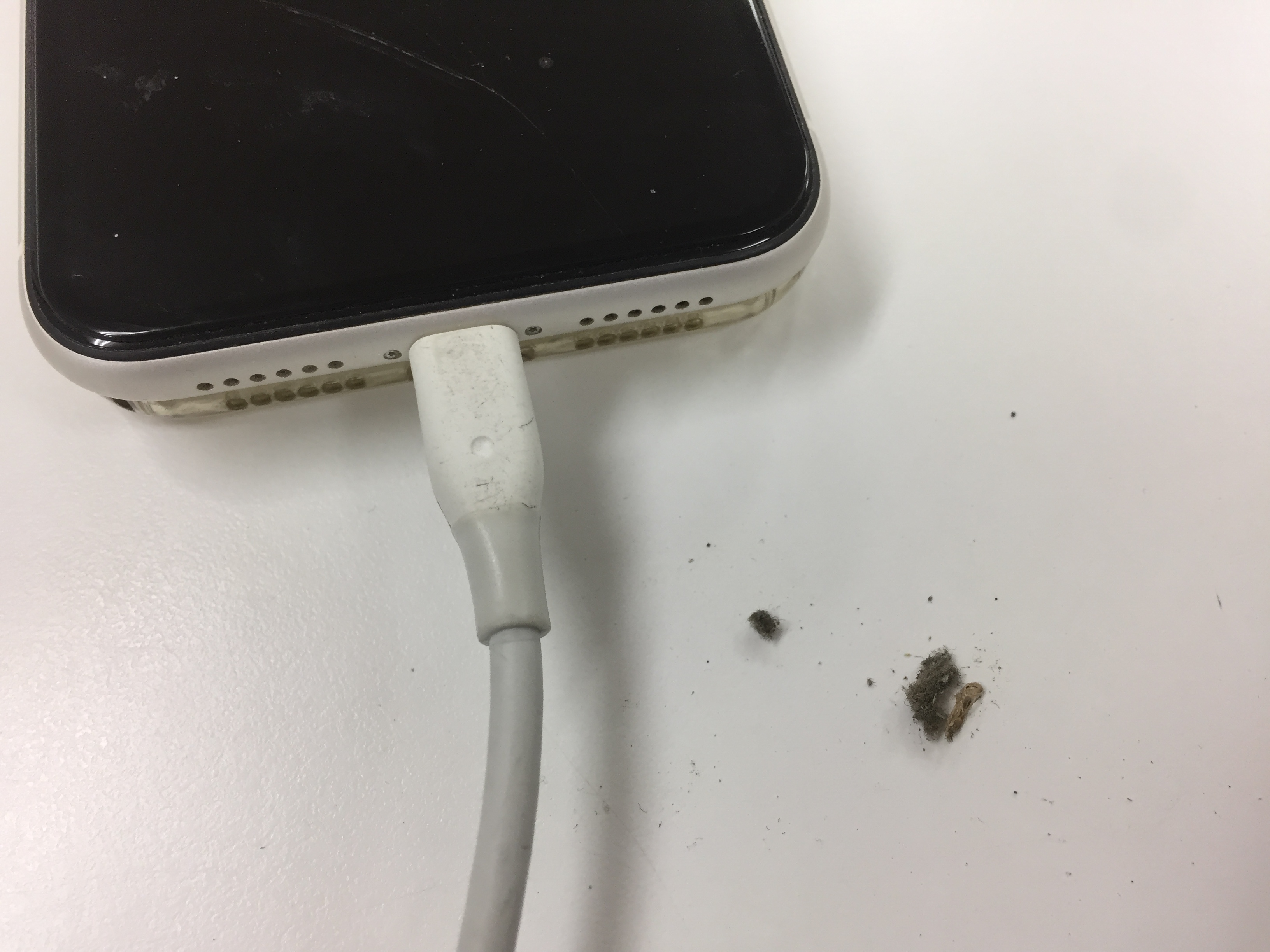 まずはコネクターに詰まった大量の埃を取り出して充電反応があるか確認します。