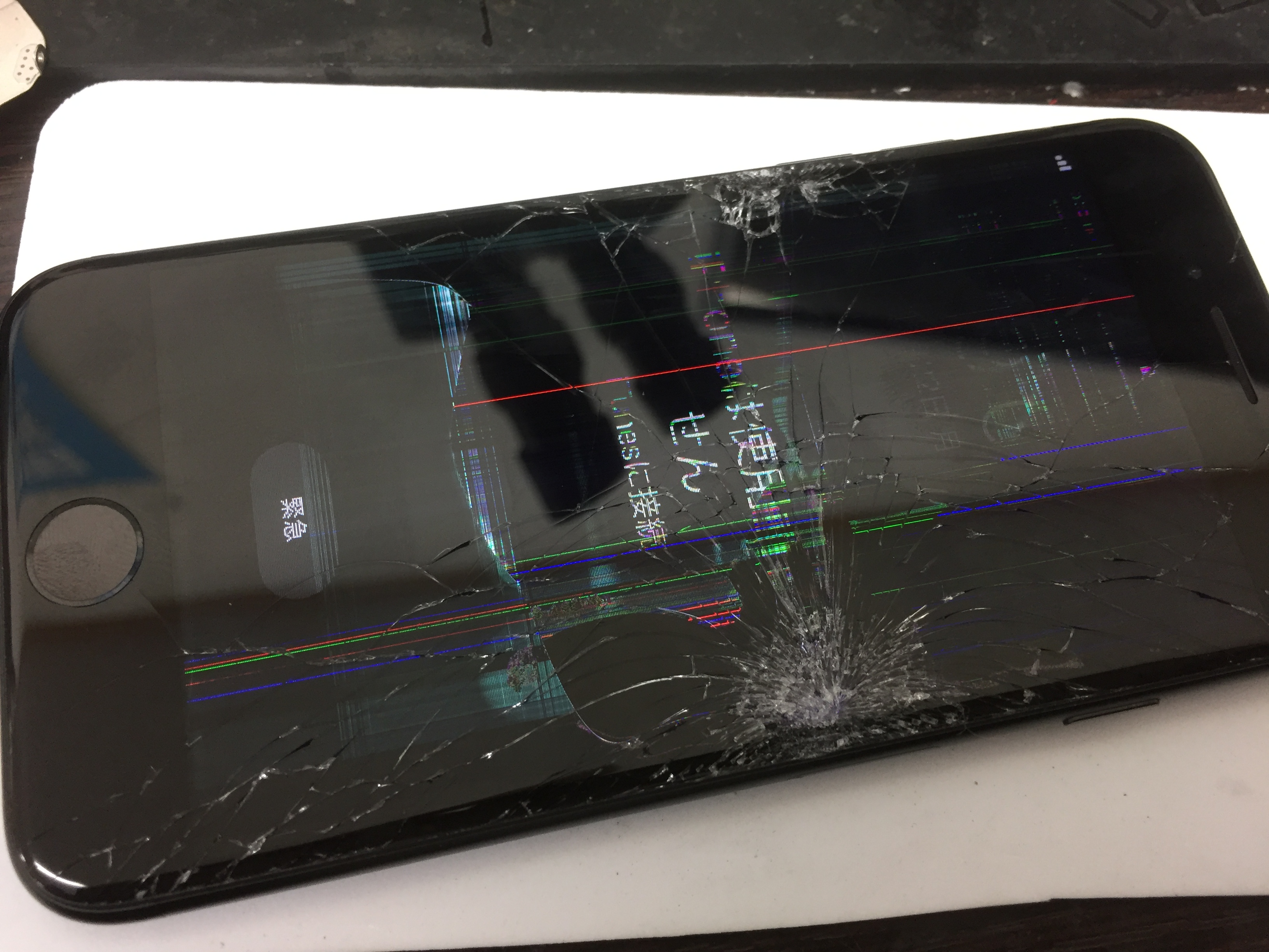 ガラスが激しく損傷し液晶不良、タッチパネルも勝手に入力されてしまう状態で画面にはiPhoneは使用できません、iTunesに接続と表示されておりました。