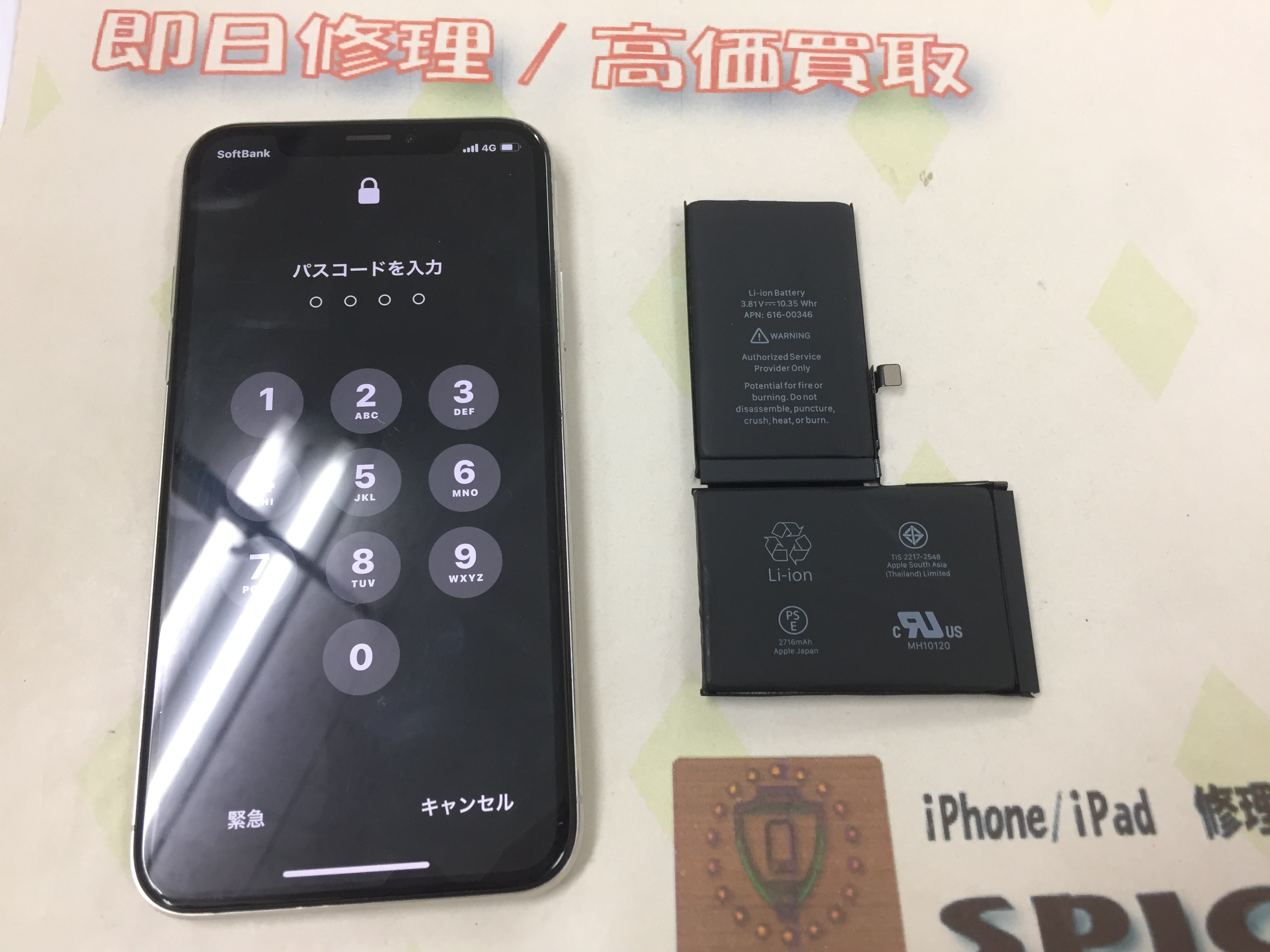 加古川市よりiPhone X バッテリー交換をご依頼いただきました。