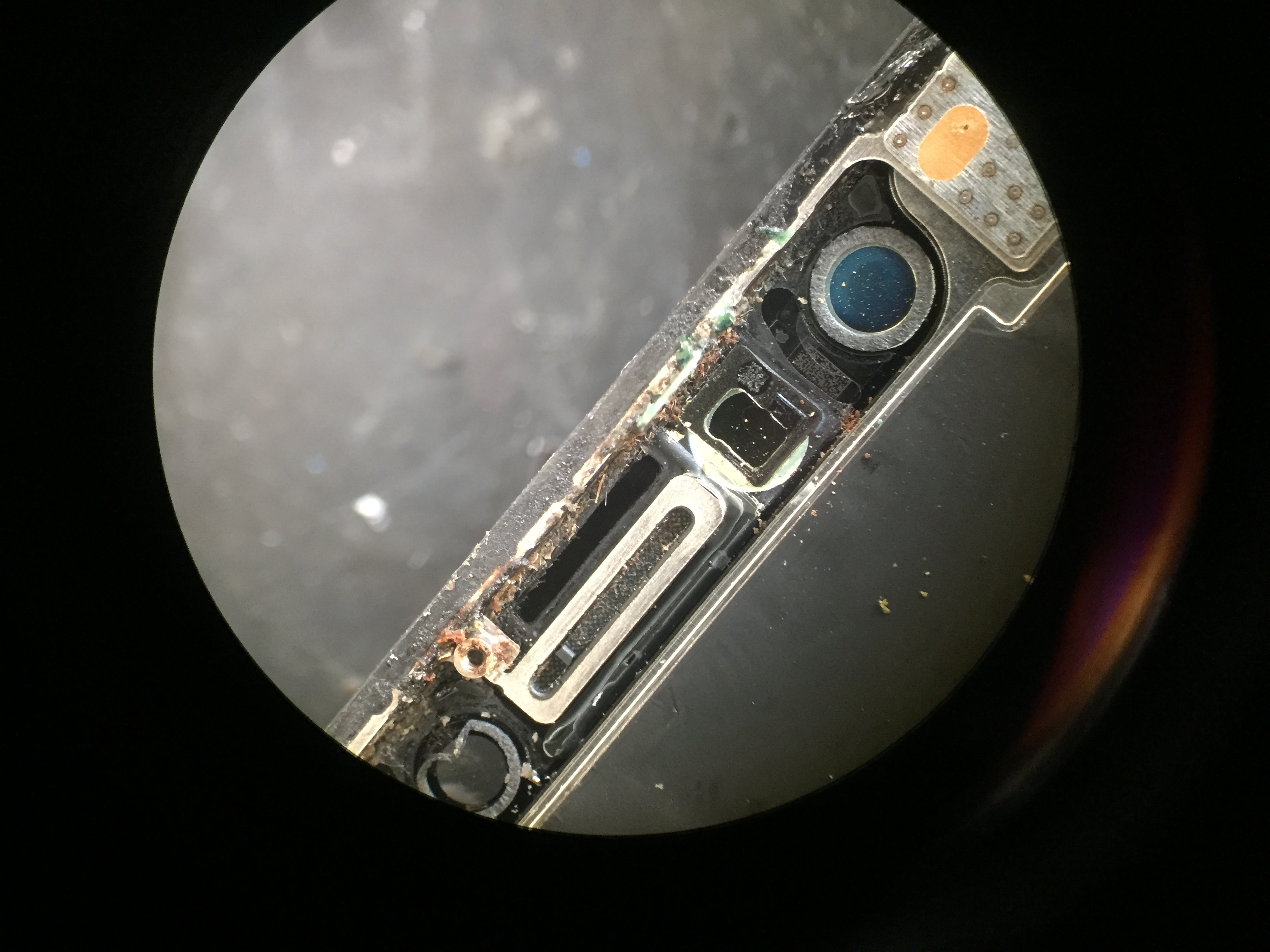 今回の端末も劣化により画面上部にガラスと画面のフレームの接着が剥がれ隙間が出来ている状態でした。