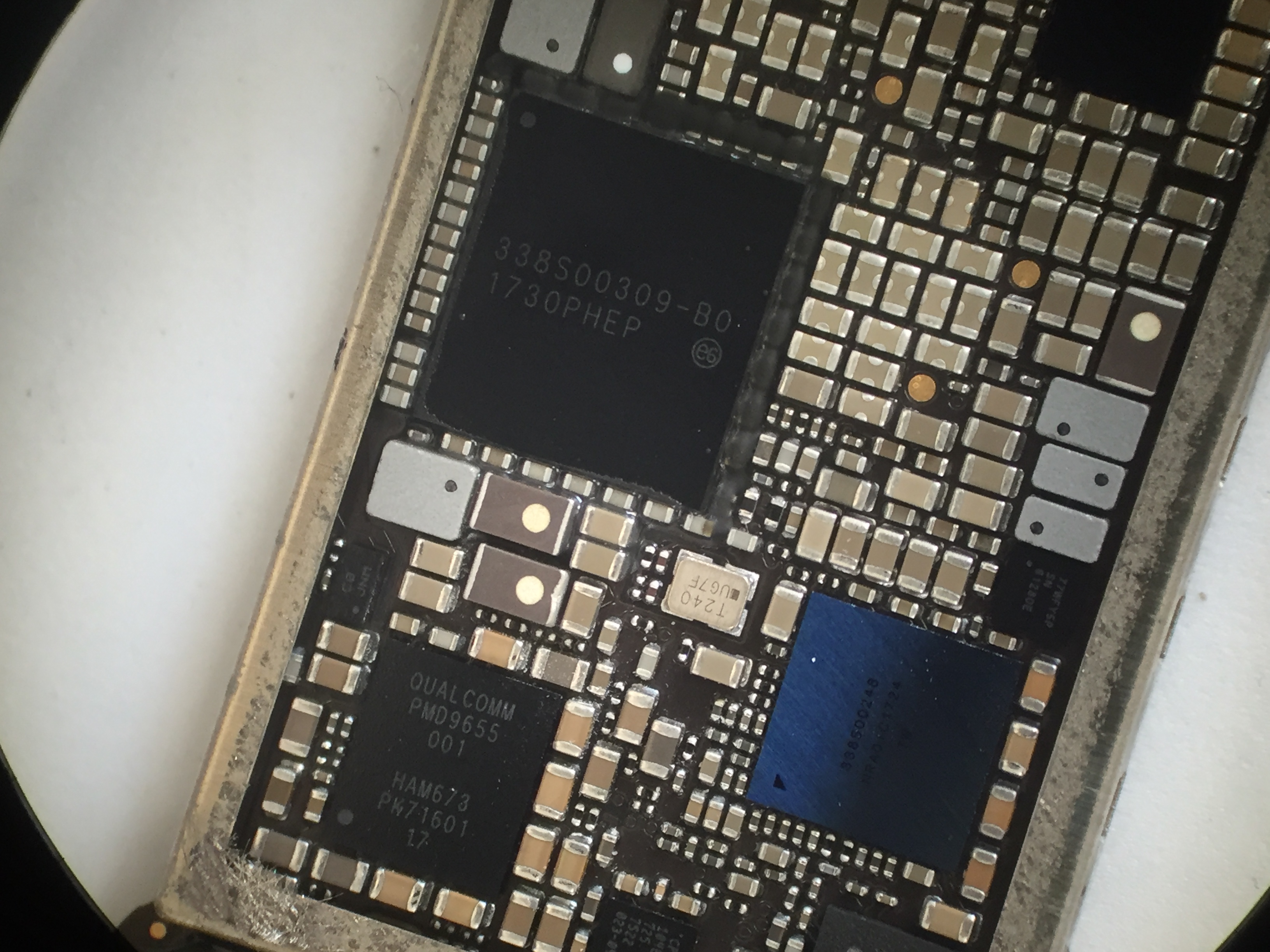今回損傷していたチップはちょうど1ミリほどの大きさのチップですがiPhoneは精密機器ですのでこのような極小さいチップ1つがダメになるだけでも起動しなくなってしまいます。