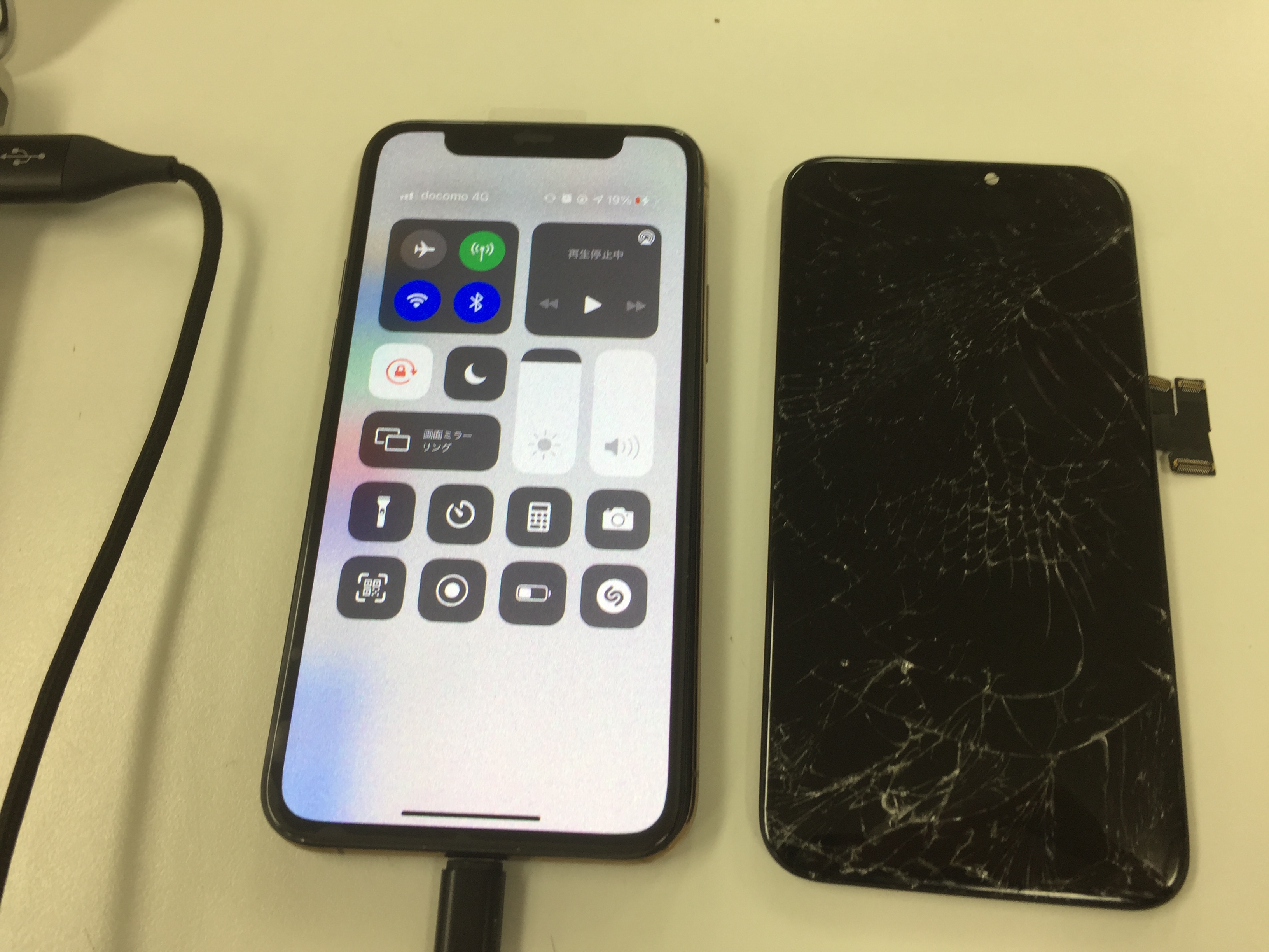 ガラス割れの影響で液晶不良となり一切操作出来ない状態でご来店です。