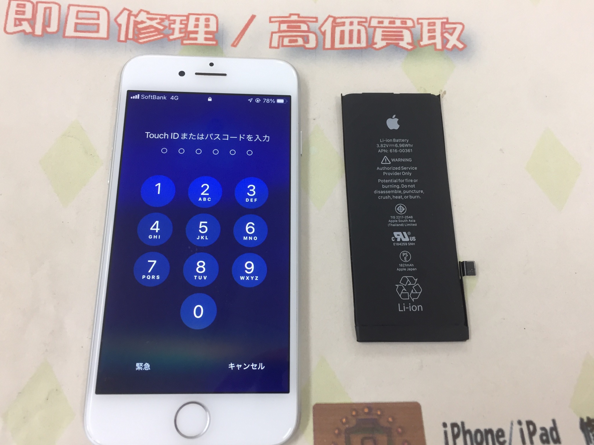 加古川市よりiPhone8 バッテリー交換をご依頼いただきました。