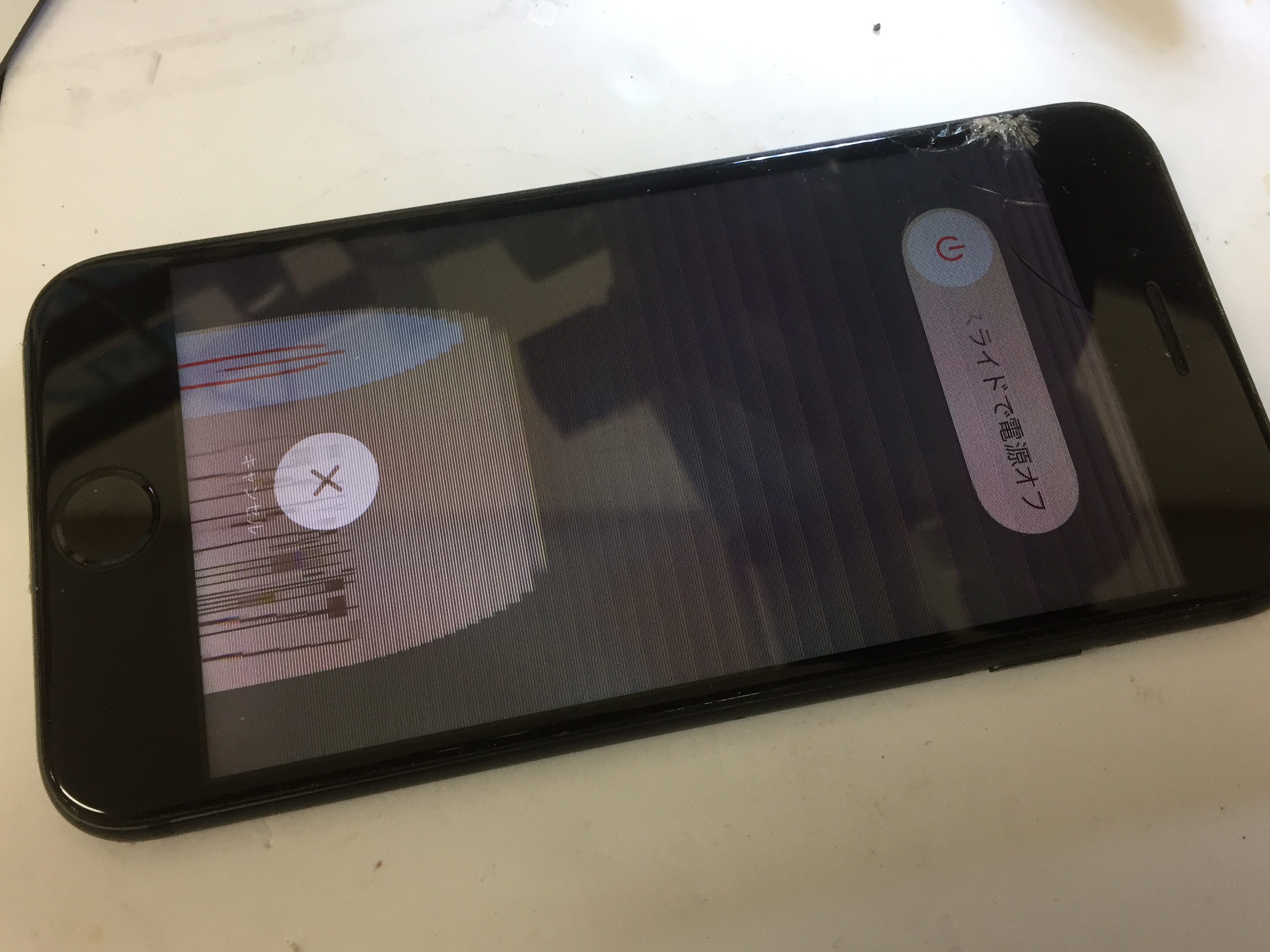 画面割れの影響で表示がおかしくなっておりましたが30分ほどで修理完了です。