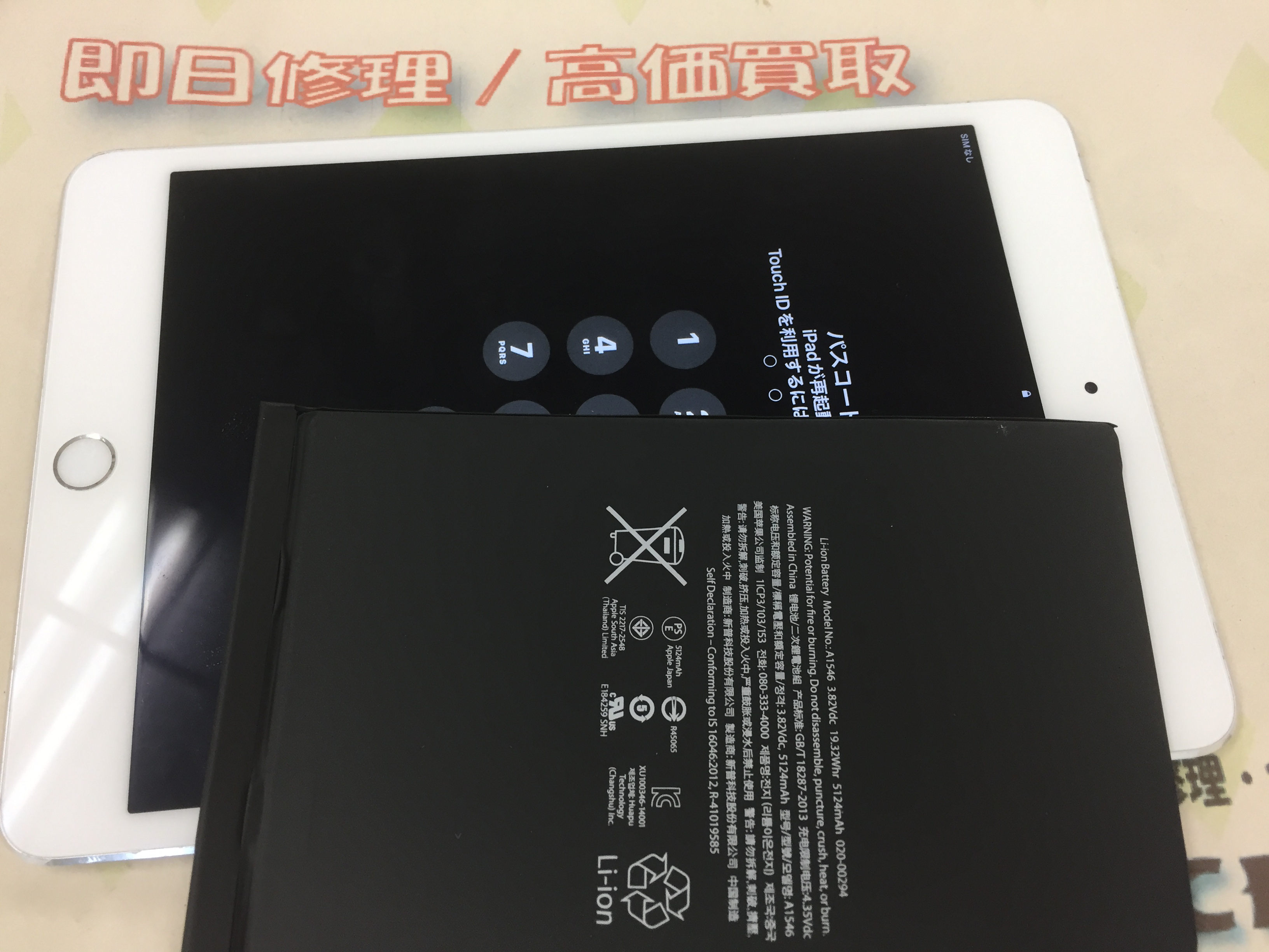 大阪市よりiPad mini4 バッテリー交換をご依頼いただきました。