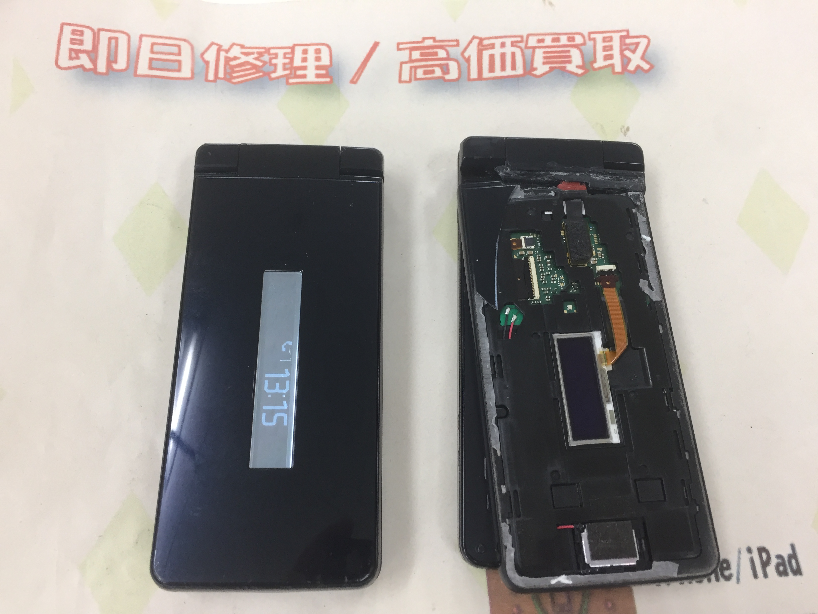 ガラケー液晶破損→メイン基板の入れ替え作業 ¥7,800(税込)