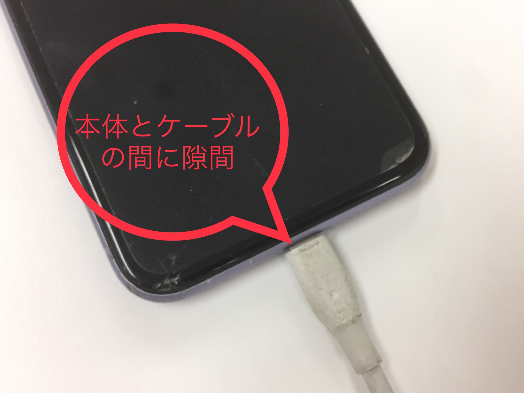 充電不良の際はまずはこのケーブルを差し込んだ際にケーブルと本体との間に隙間がないかをご確認下さい。