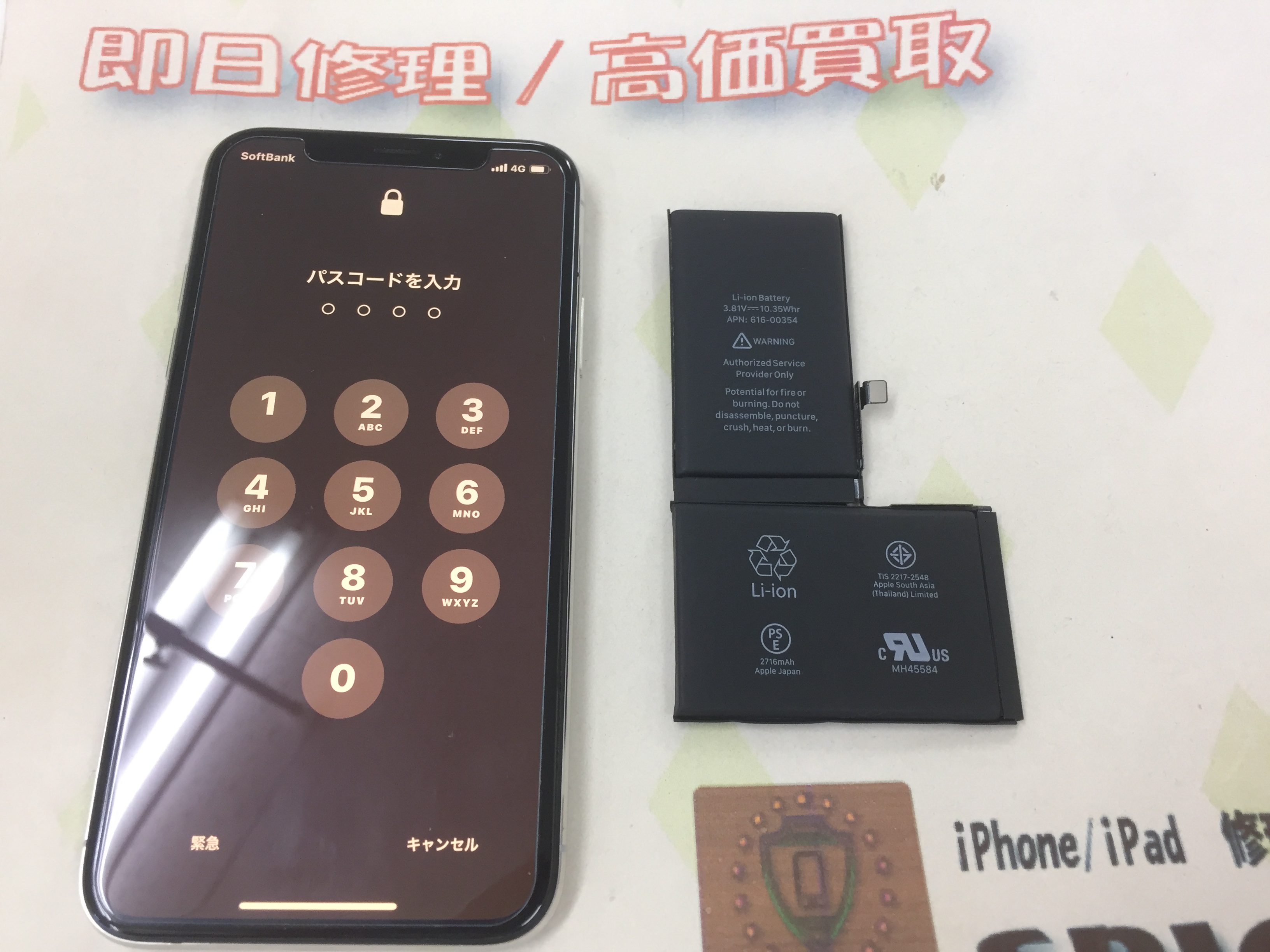 iPhone X バッテリー交換 ¥7,300(税込)クーポン利用500円オフ