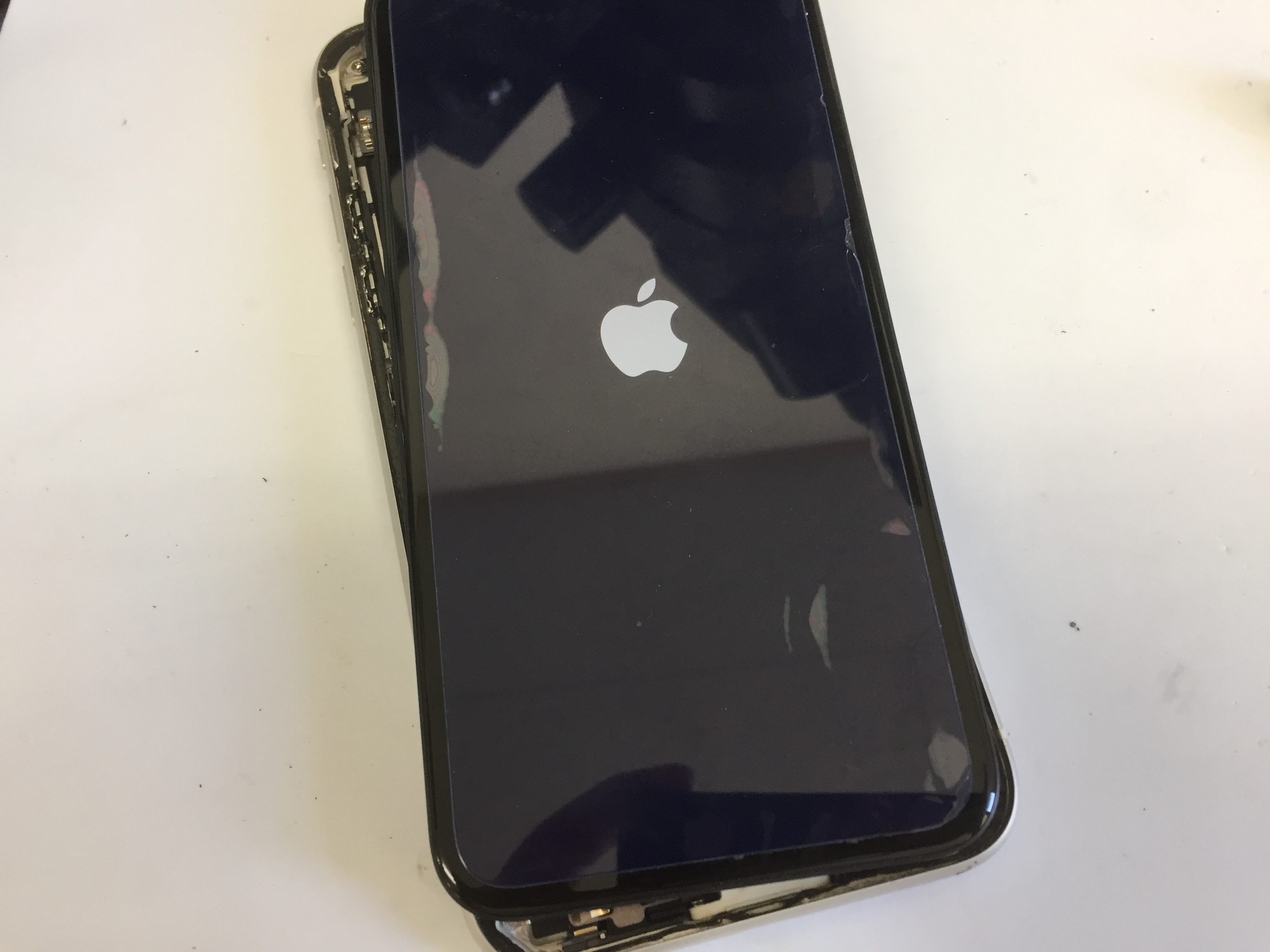強制再起動などを行っても反応がありませんので一度分解し内部を確認すると水没している痕跡が見られました。