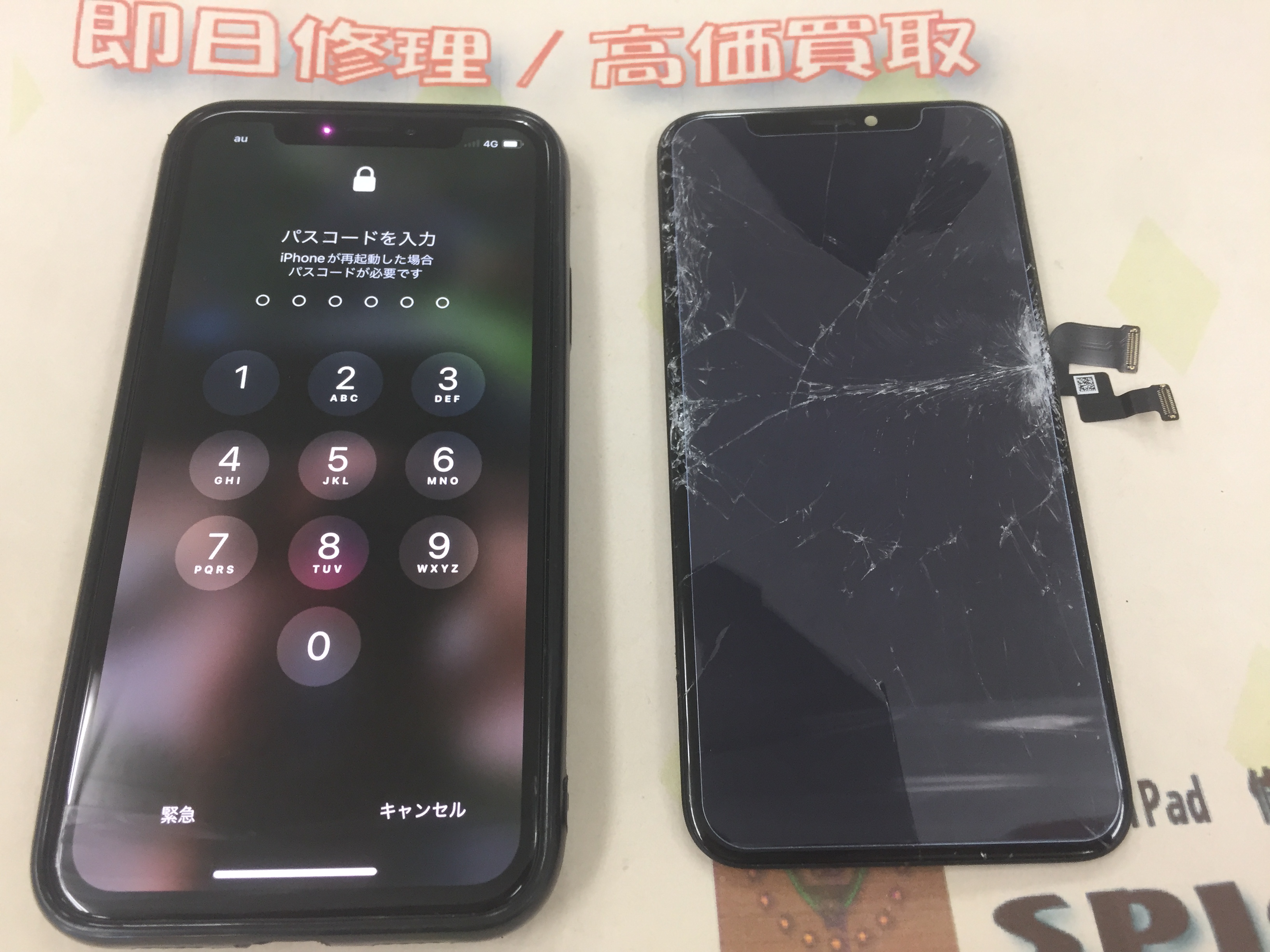 iPhone X ガラス割れ→有機ELパーツ ¥15,800(税込)